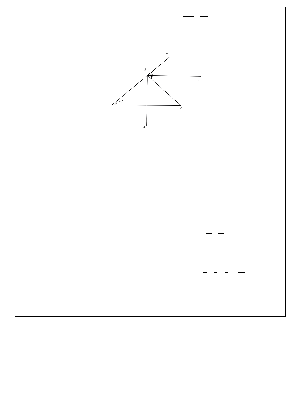 xAy ABC = 40° .Mà hai góc ở vị trí đồng vị nên Ay∥ BC . b) 0,25 Do yAC và