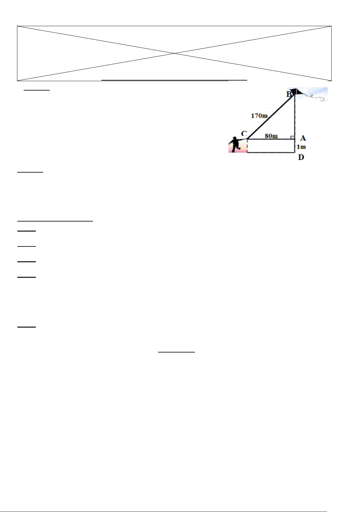đoạn dây diều từ tay bạn đến diều là BC = 170m và bạn