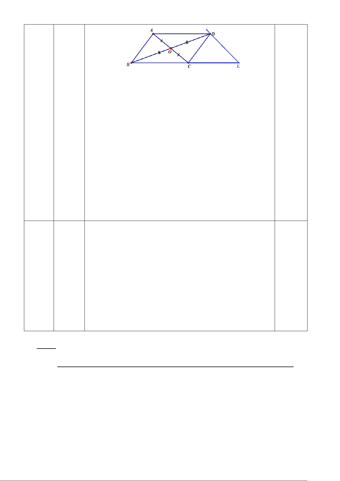 Bài 4: (2,0 điểm) Cho ABC cân tại A, lấy điểm O là trung điểm của AC. Trên tia đối của tia