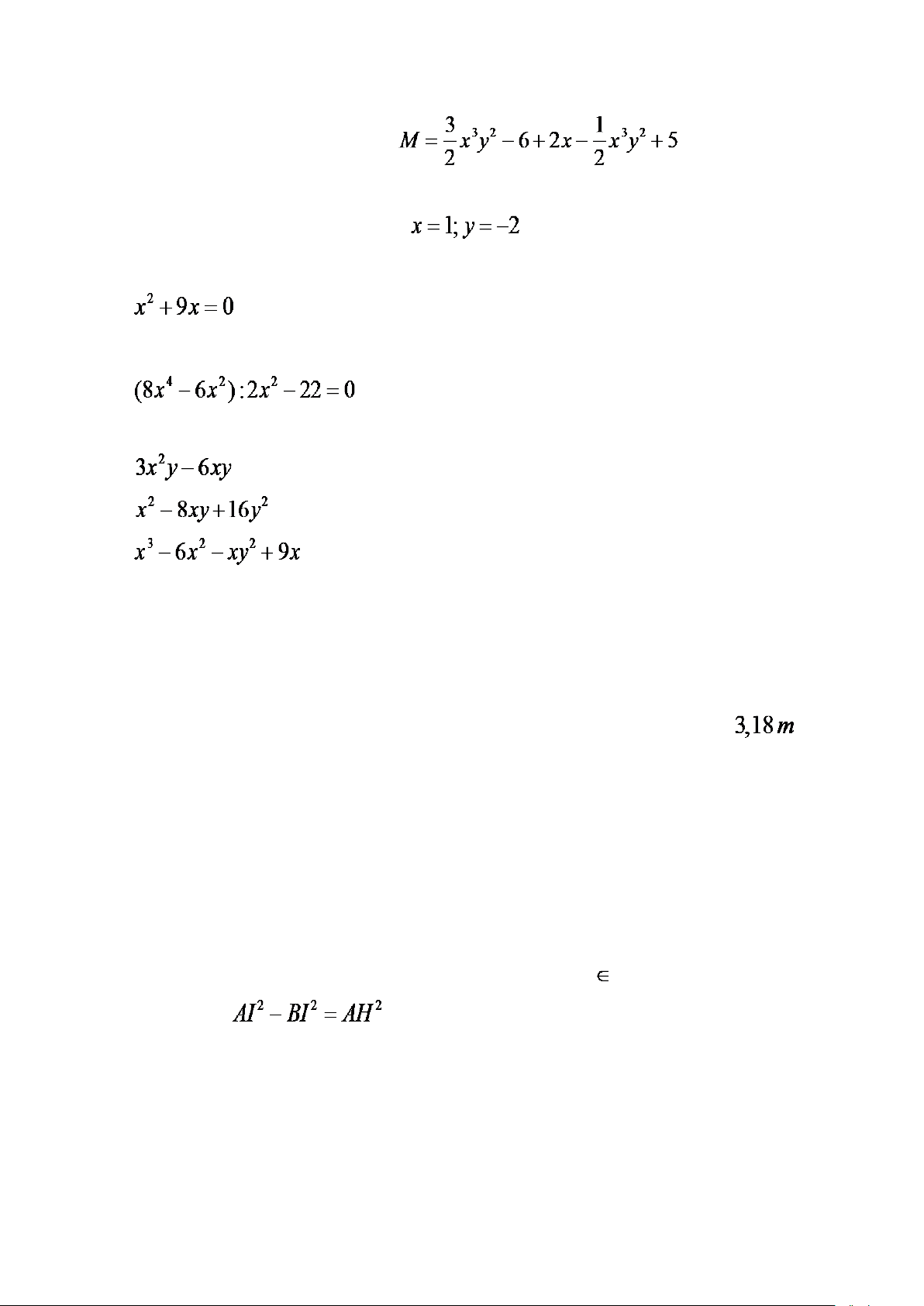 a) 1,0đ a) Thu gọn biểu thức M. b) 0,5đ 0,5đ 0,5đ