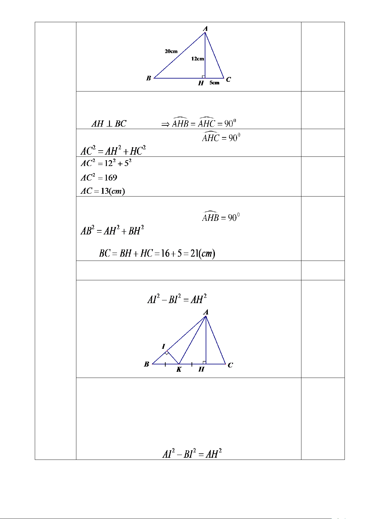 1. Giả sử AB = 20cm, AH = 12cm, HC = 5cm.