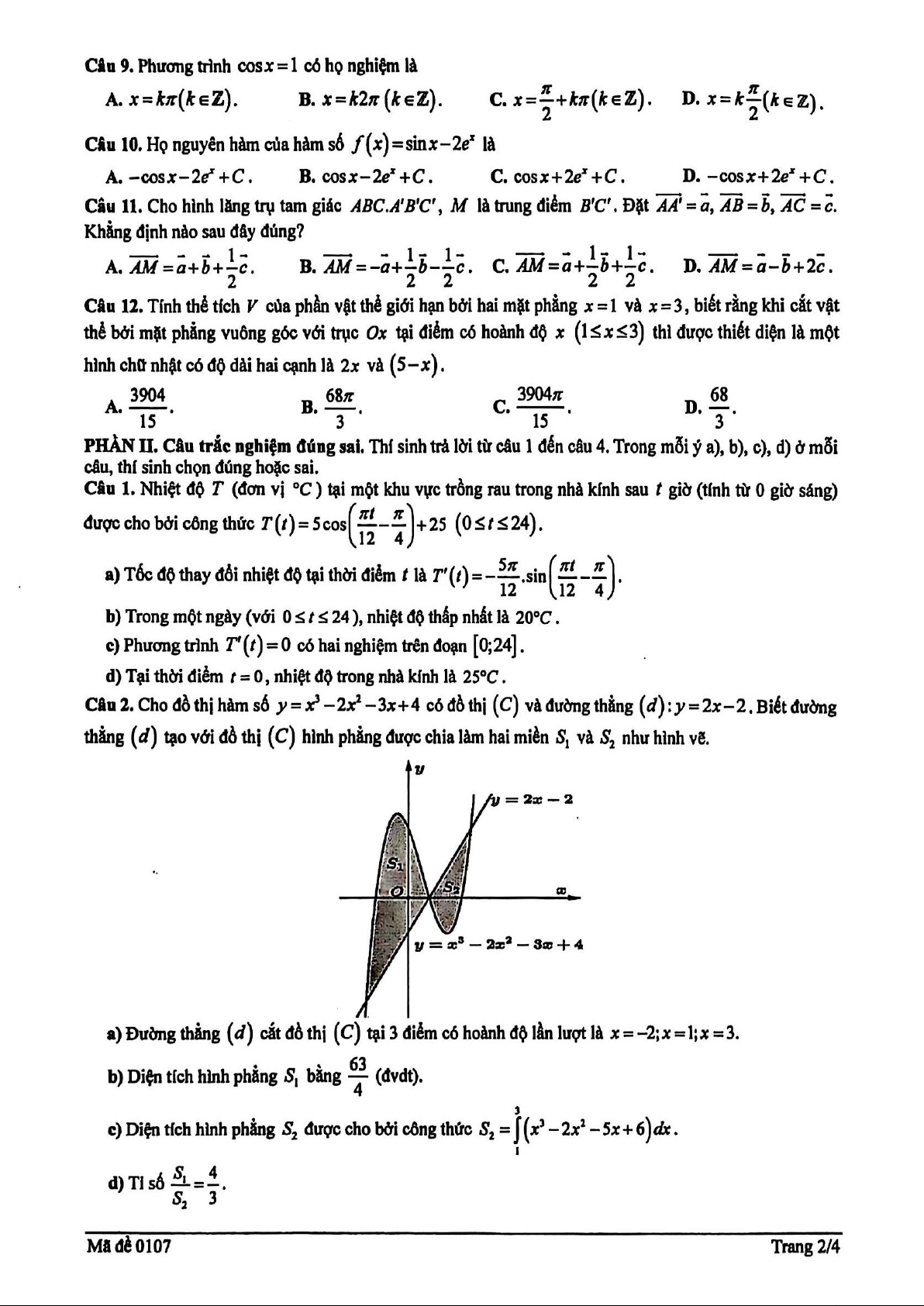 Đề ôn tập giữa kỳ 2 Toán 12 năm 2025 – 2026 trường THPT Thuận Thành 2 – Bắc Ninh
