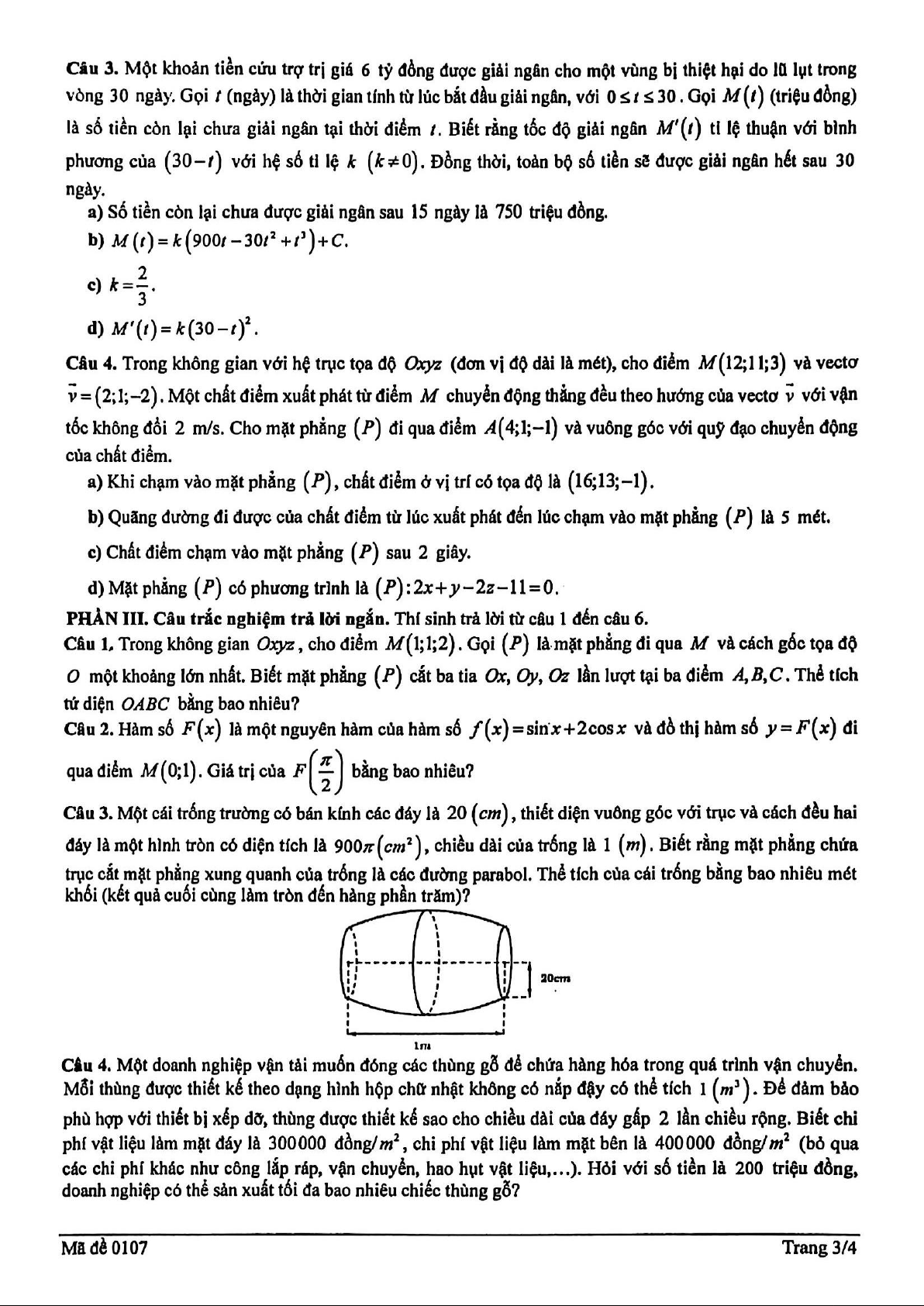 Đề giữa học kì 2 Toán 12 năm 2025 – 2026 trường THPT Phan Huy Chú – Hà Nội
