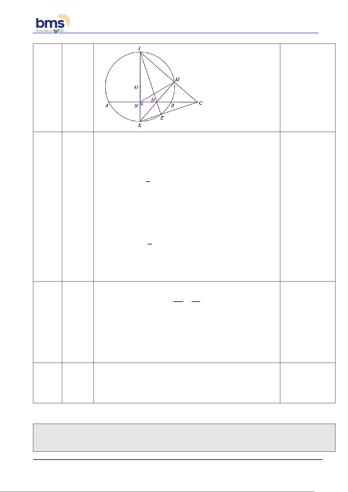 c) Gọi E là giao điểm của hai đường thẳng ID và CK . Chứng minh E thuộc đường tròn (O) . Phần Điểm Đáp án Thông tin thêm 5 Hình vẽ 0,25