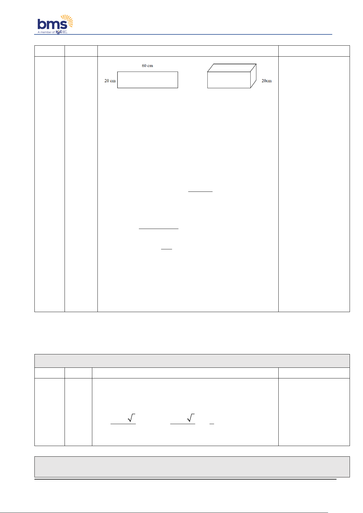 Thể tích hình hộp chữ nhật là: V x x 3 (30 ) 20 cm 0,5 2
