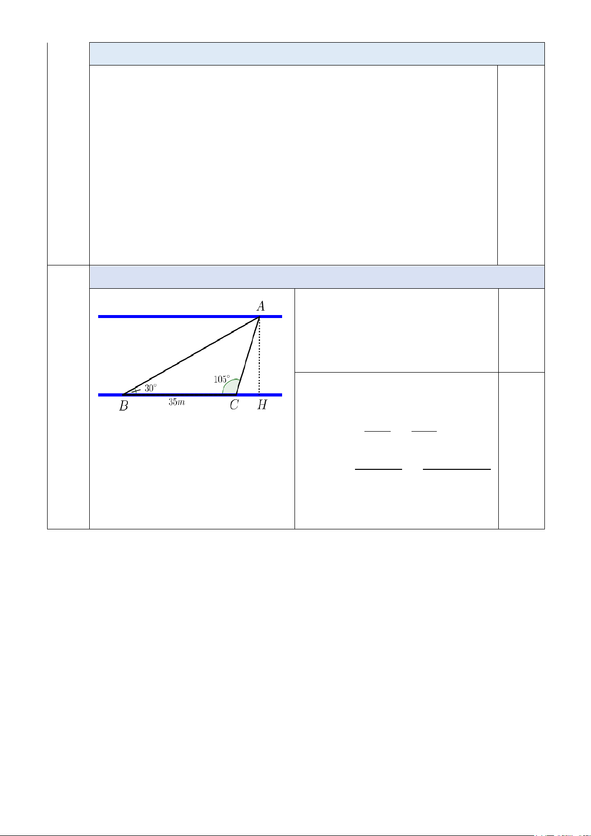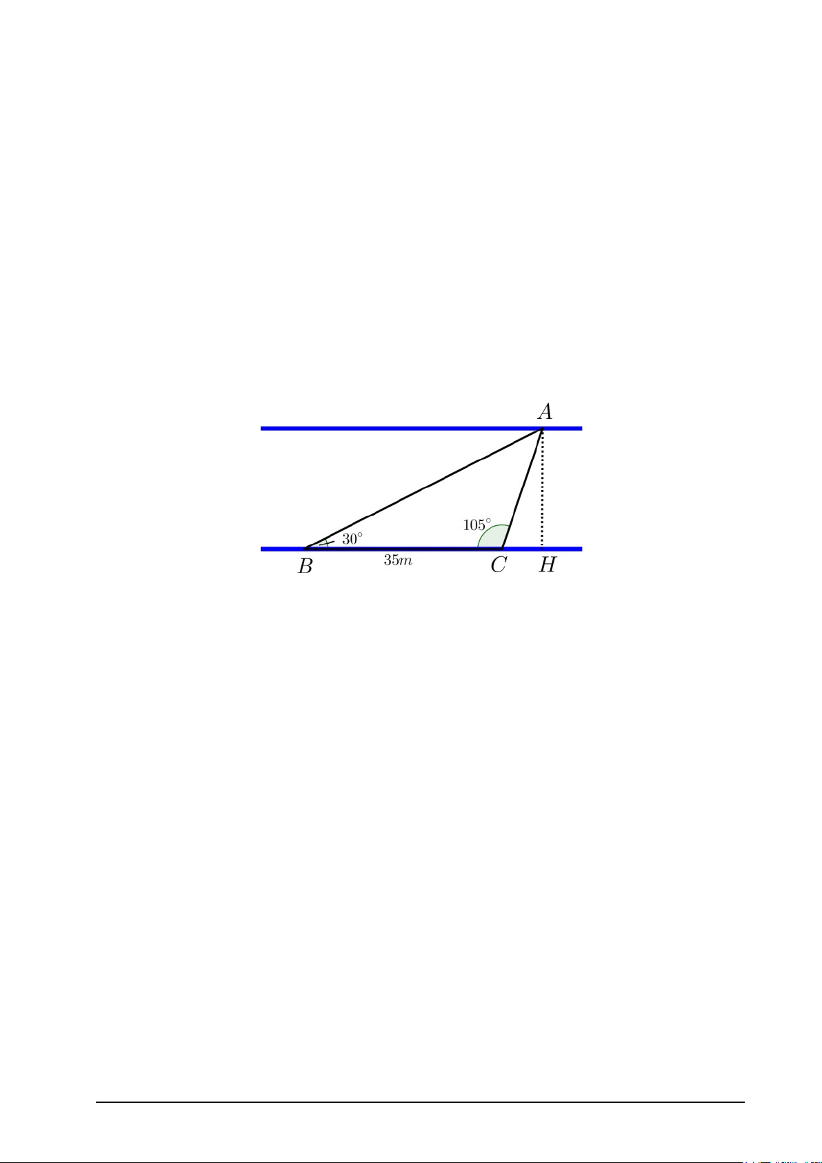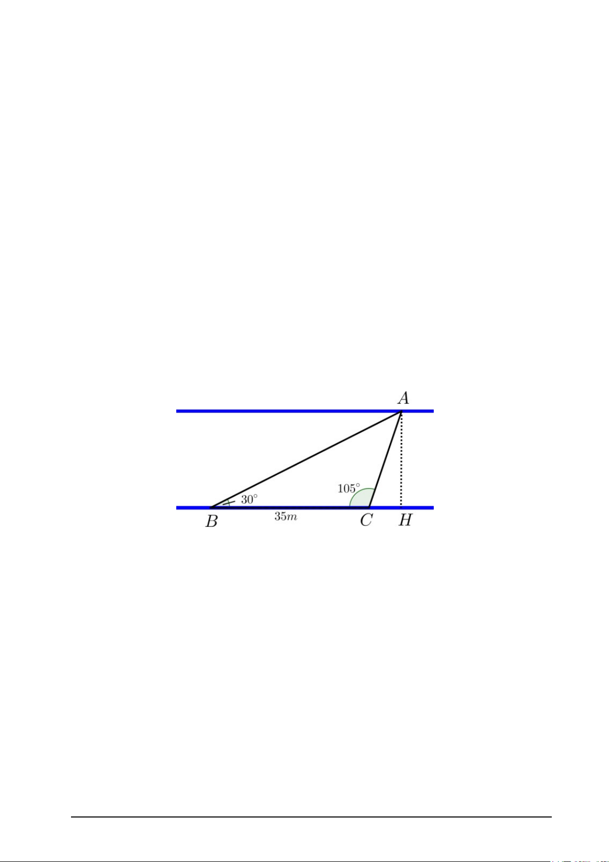 Áp dụng định lý sin trong 3 △ABC: BC AB 0,25 sinA = sinC BC. sinC 35. sin1050 ⇒ 𝐴𝐴𝐵𝐵 = 0,25 sinA = sin450 0,25 ⇒ AB ≈ 47,8 m. Trang 3