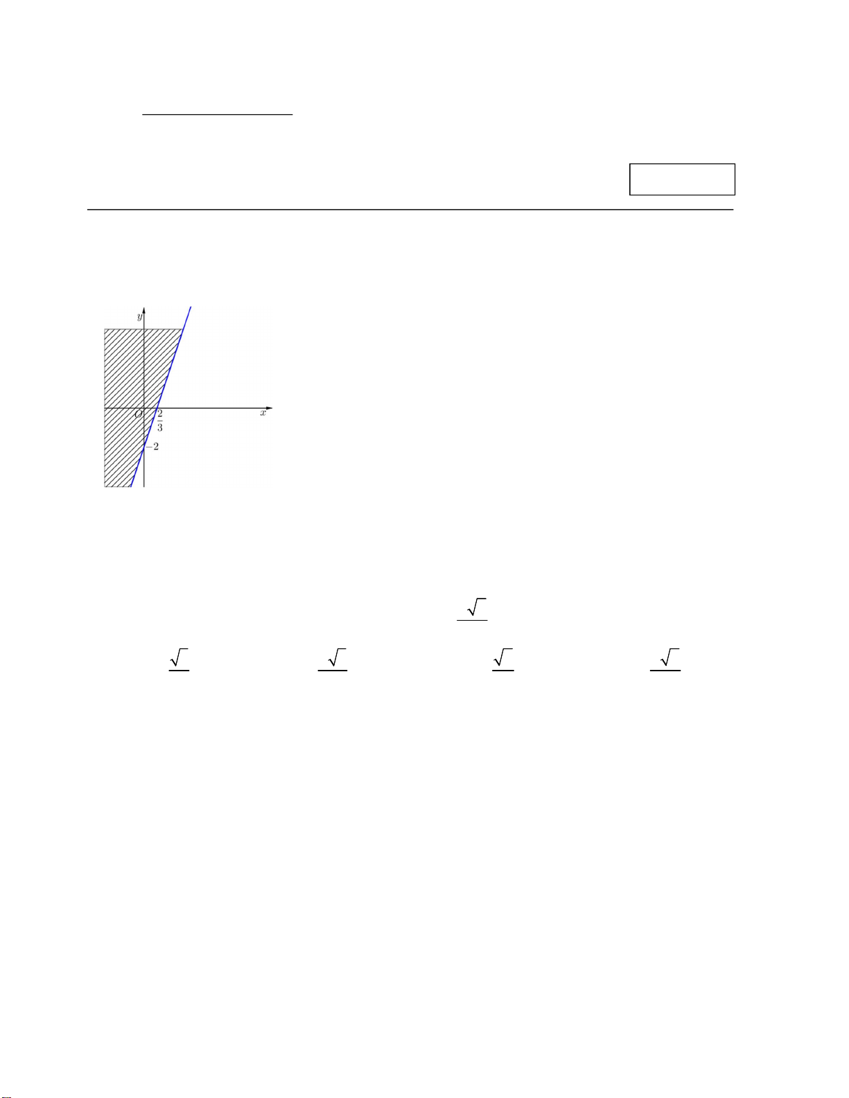 Câu 1. Miền nghiệm của bất phương trình nào sau đây được biểu diễn bởi nửa mặt phẳng không bị gạch trong hình vẽ? A. 2x y 1. B. 3x y 2 . C. 2x y 1. D. 3x y 2 .