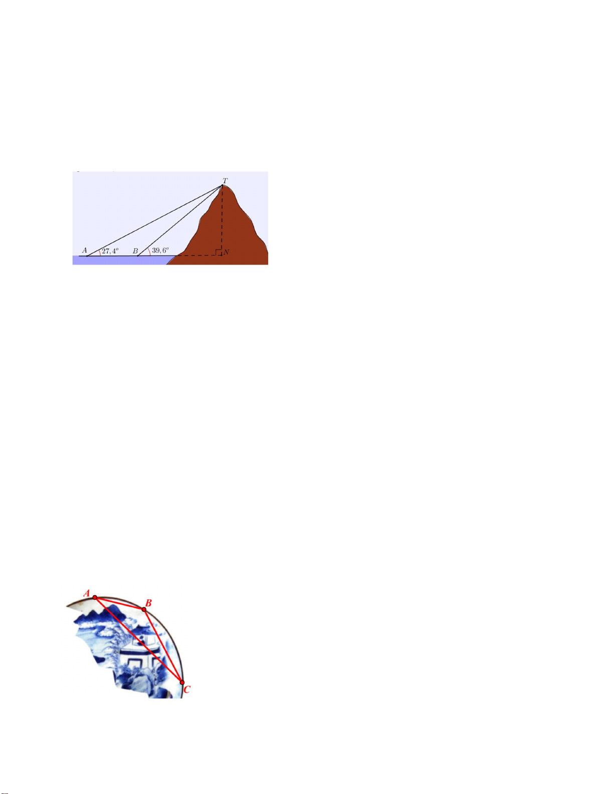 Câu 1. Các góc nhìn đến đỉnh núi so với mực nước biển được đo từ hai đèn tín hiệu A và B trên biển được thể