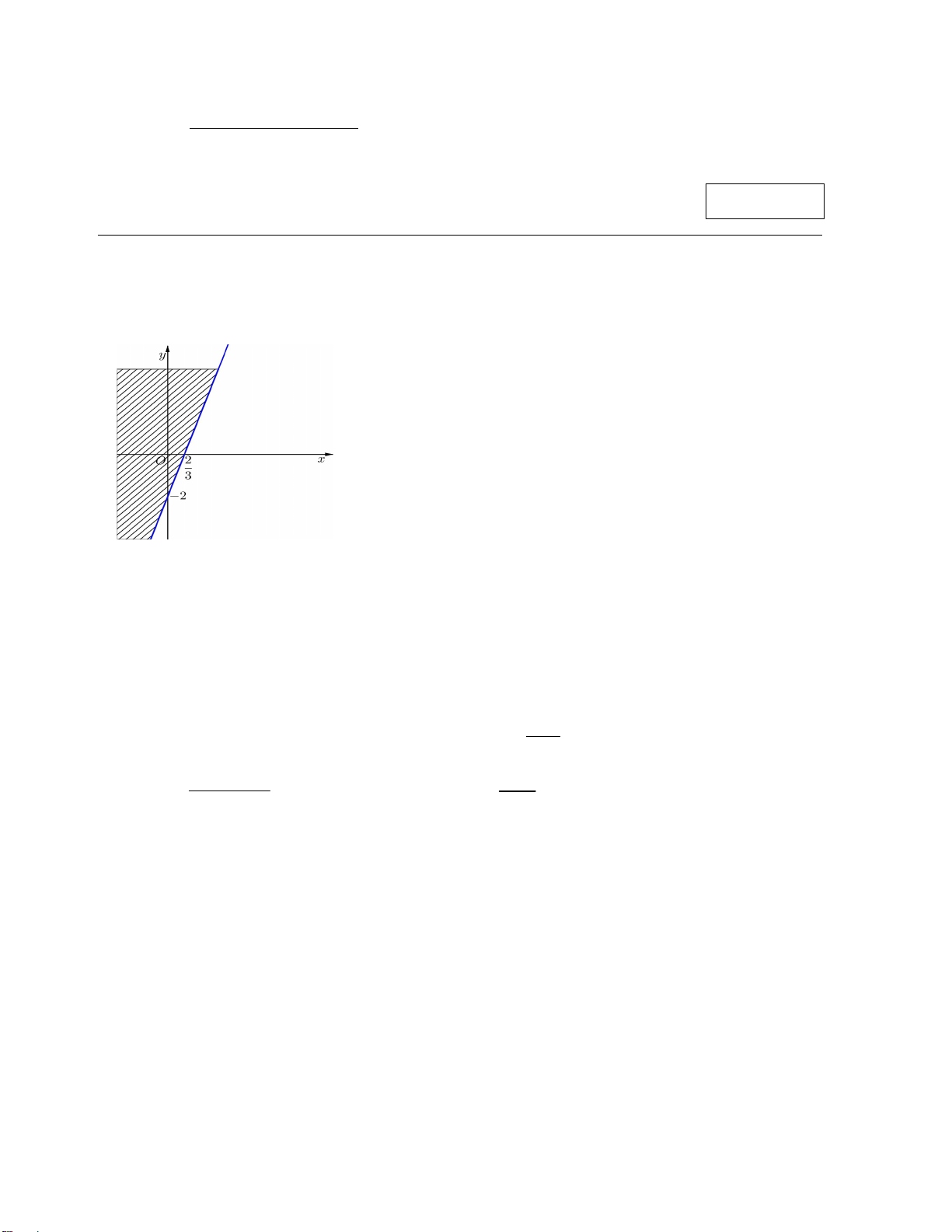 Câu 1. Miền nghiệm của bất phương trình nào sau đây được biểu diễn bởi nửa mặt phẳng không bị gạch trong hình vẽ bên? A. 2x y 1. B. 3x y 2 . C. 2x y 1. D. 3x y 2 .