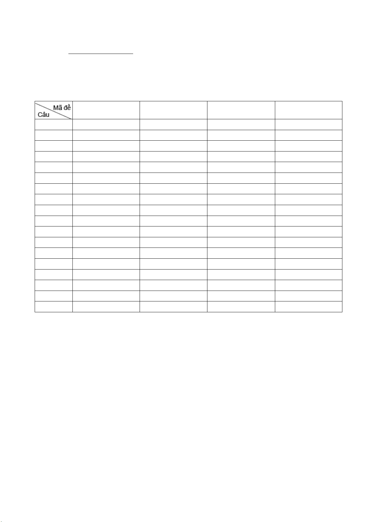 PHẦN I: (3 điểm) Câu trắc nghiệm nhiều phương án lựa chọn. Học sinh trả lời từ câu 1 đến câu 12. Mỗi