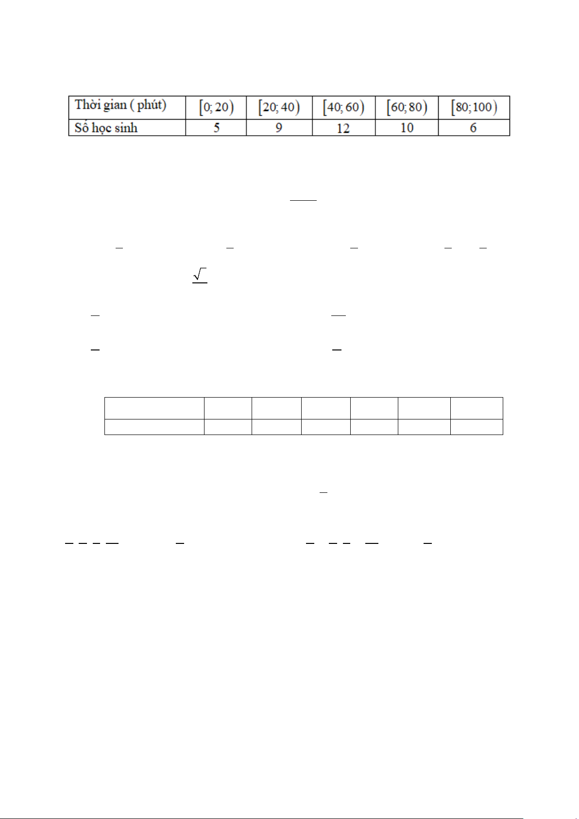 tuyến của nhóm học sinh, ta có bảng số liệu sau: