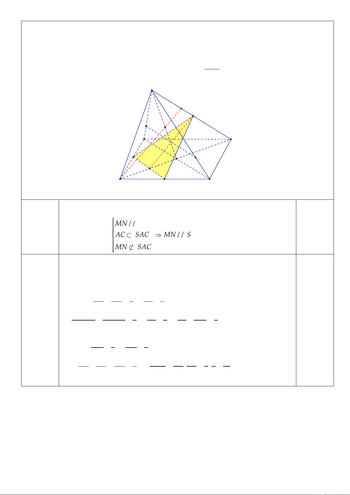 (0.5 điểm) MN là đường trung bình của tam giác ABC MN / / AC 0, 25 MN / / AC Ta có: AC SAC MN / / SAC 0, 25 MN SAC 3b