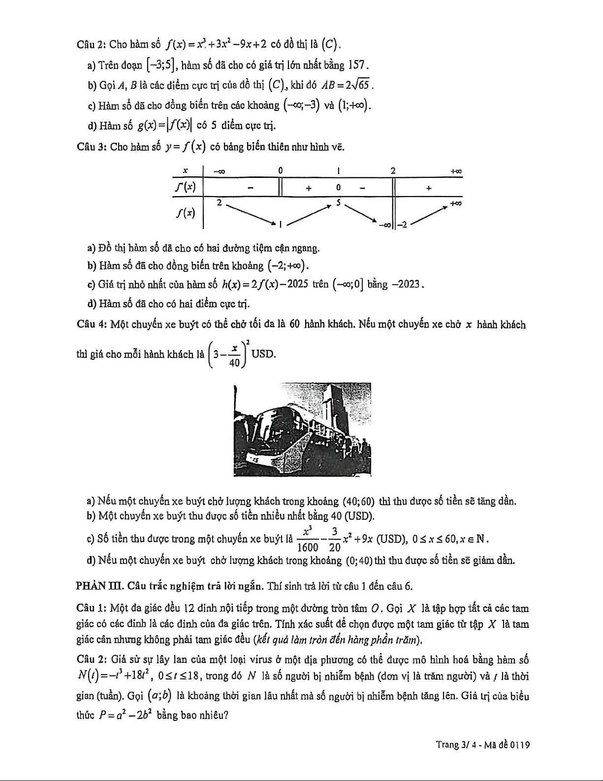 Đề giữa học kỳ 1 Toán 12 năm 2025 – 2026 trường THPT Trương Định – Hà Nội