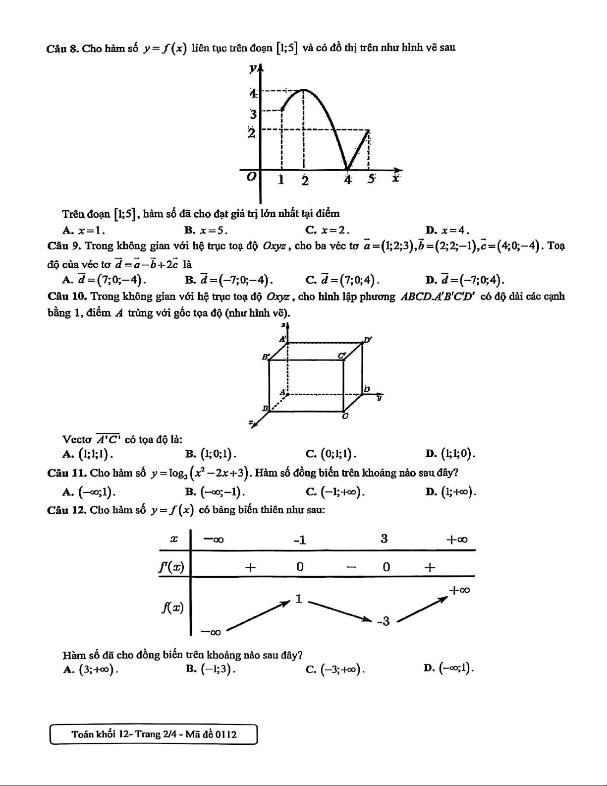 Đề giữa học kỳ 1 Toán 12 năm 2025 – 2026 trường THPT Việt Đức – Hà Nội