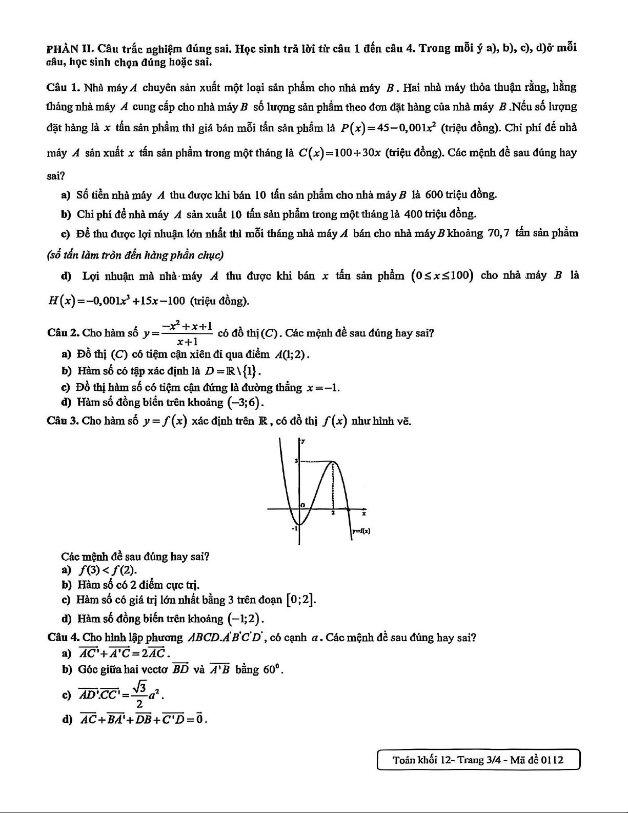 Đề giữa học kỳ 1 Toán 12 năm 2025 – 2026 trường Tạ Quang Bửu – Hà Nội