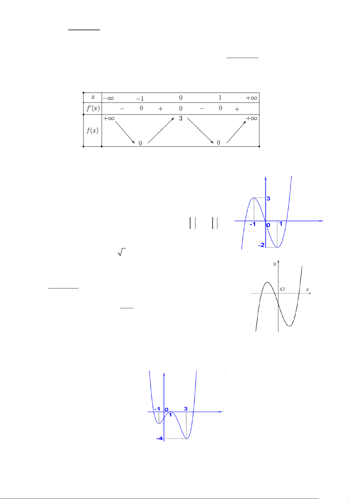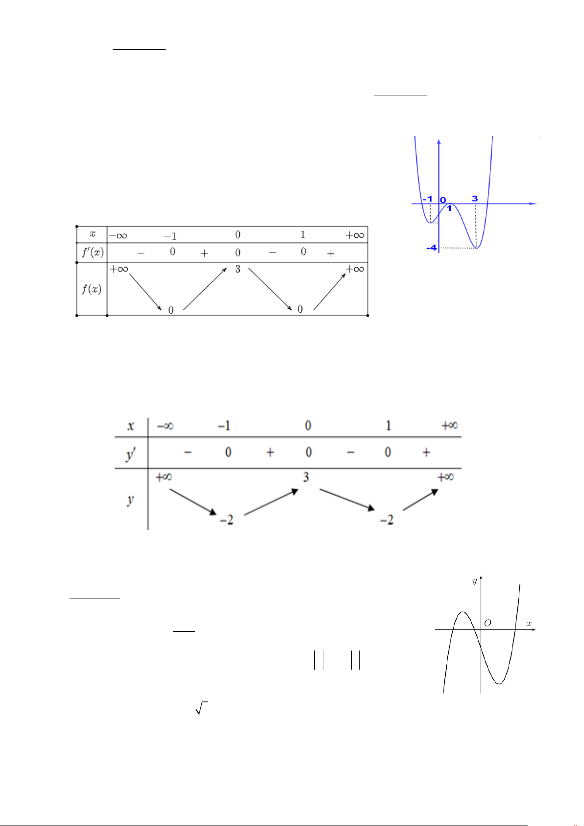 Câu 2: Cho hàm số đa thức bậc ba y = f (x) có đồ thị như hình vẽ