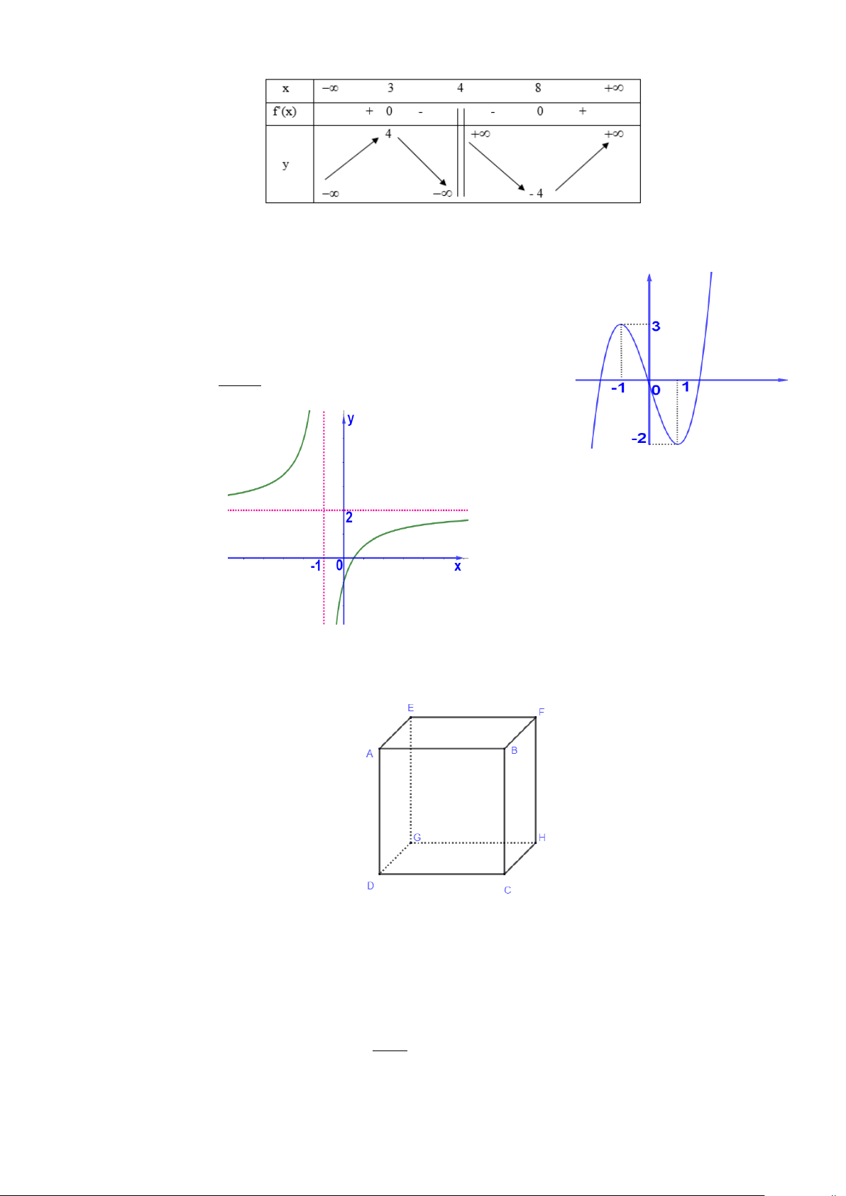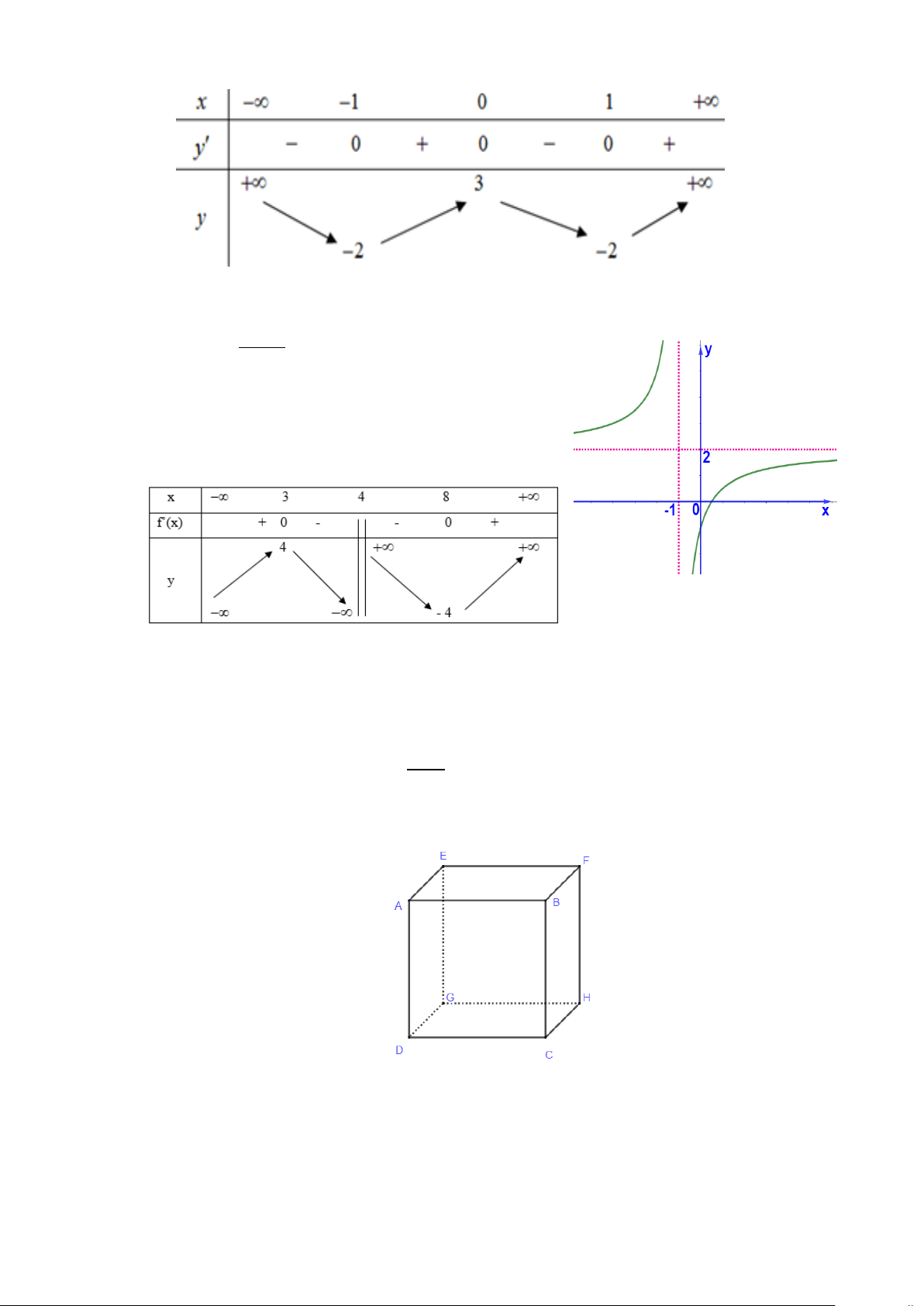 Câu 1: Cho hàm số y = f (x) có bảng biến thiên như sau: