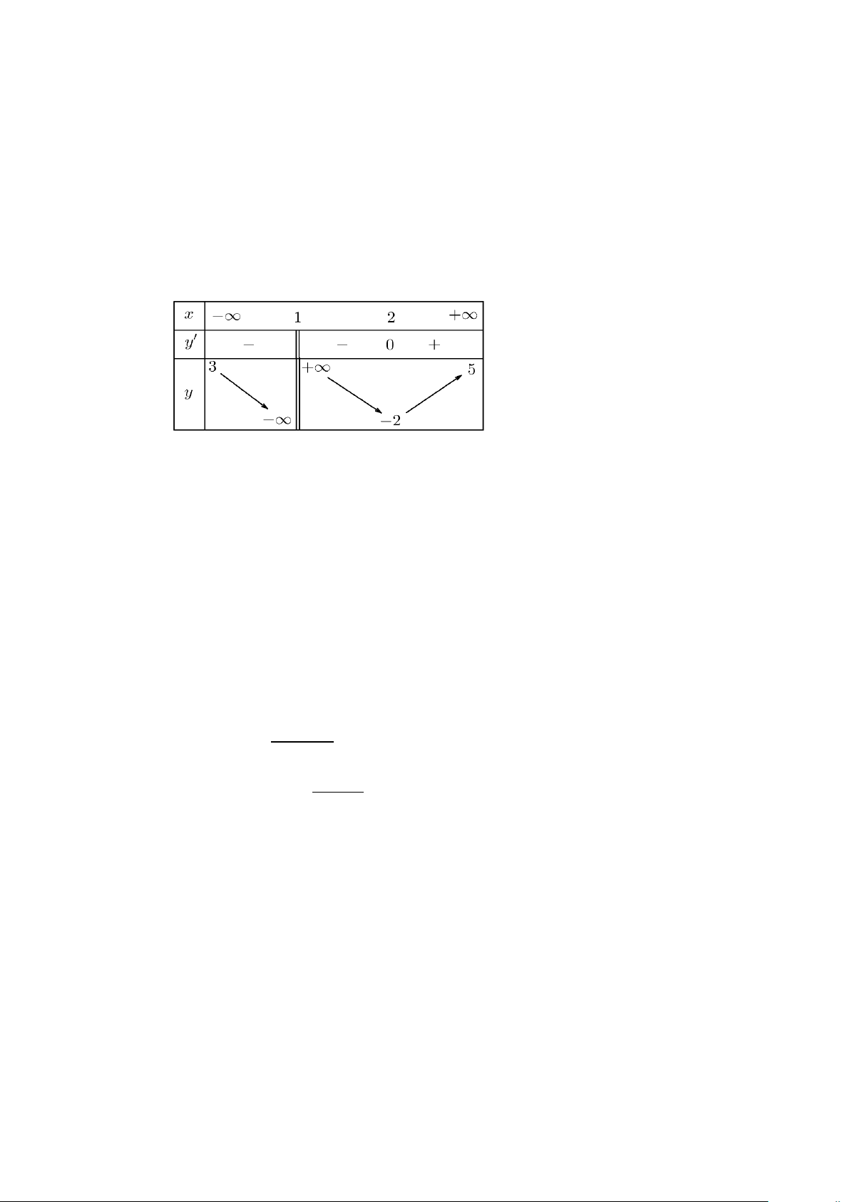 Câu 2: Cho hàm số y = f (x) có bảng biến thiên như sau: