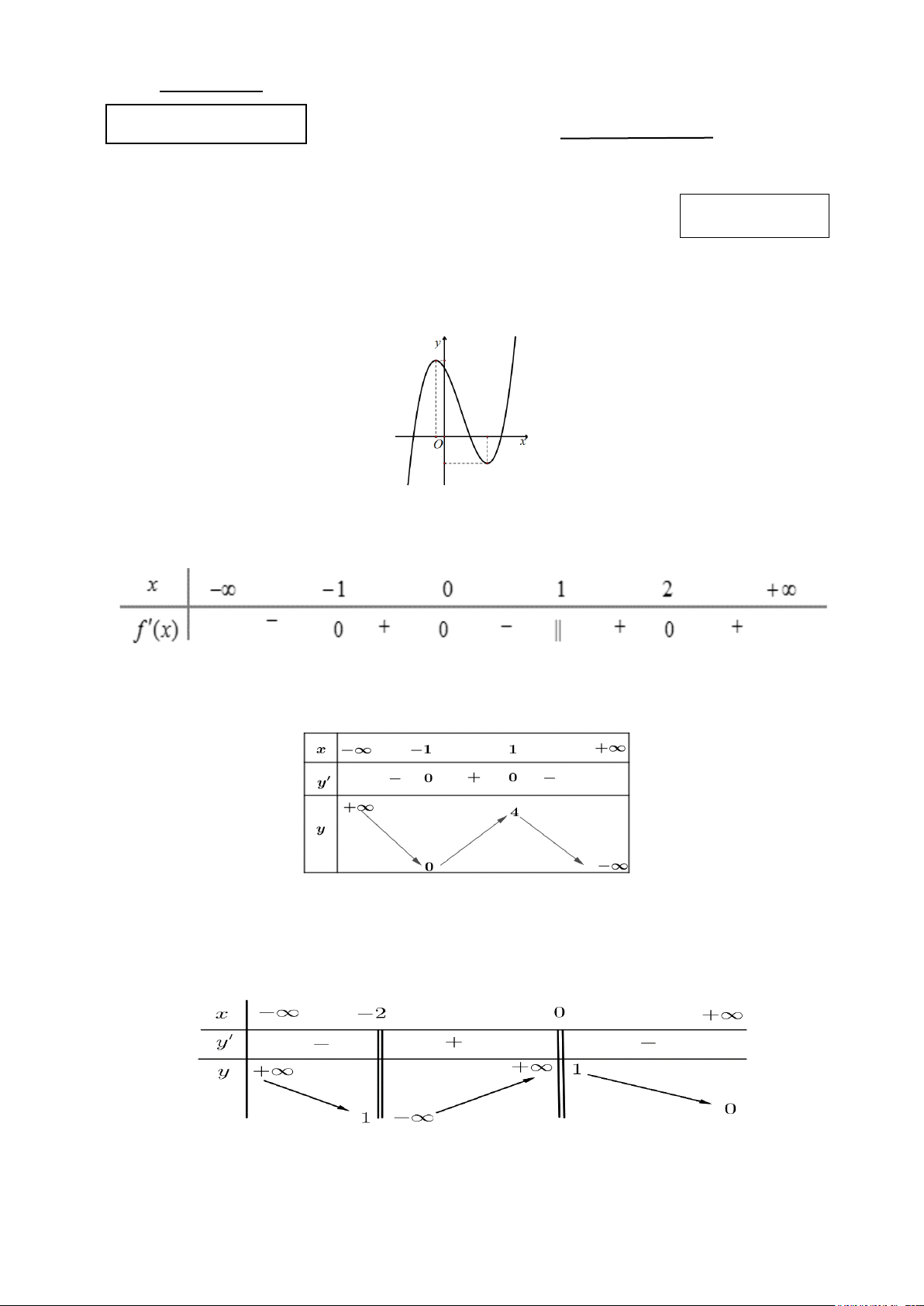 Câu 5: Cho hàm f (x) liên tục trên và có bảng xét dấu f ′(x) như sau: