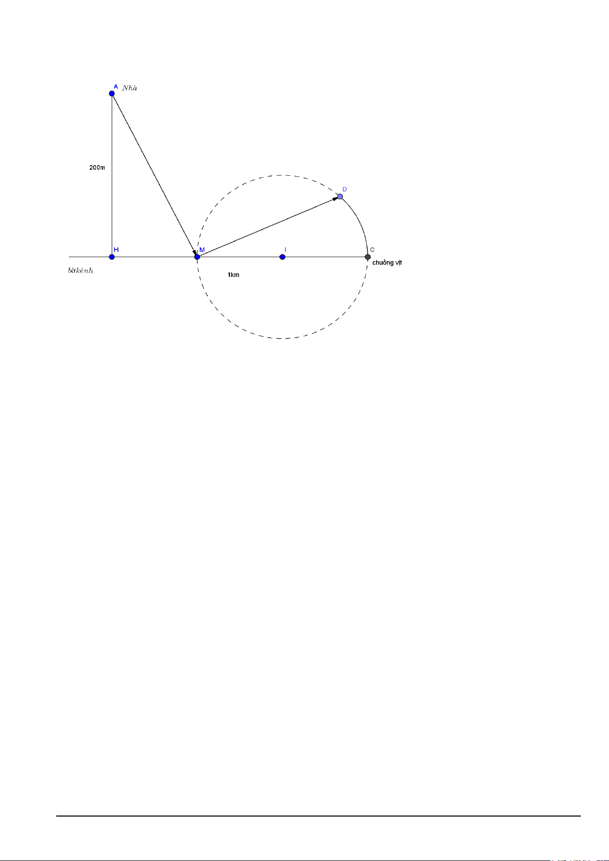 nhất từ nhà tại điểm A đến điểm M trên bờ kênh. Tại điểm M ông rào một ao hình tròn có đường kính bằng