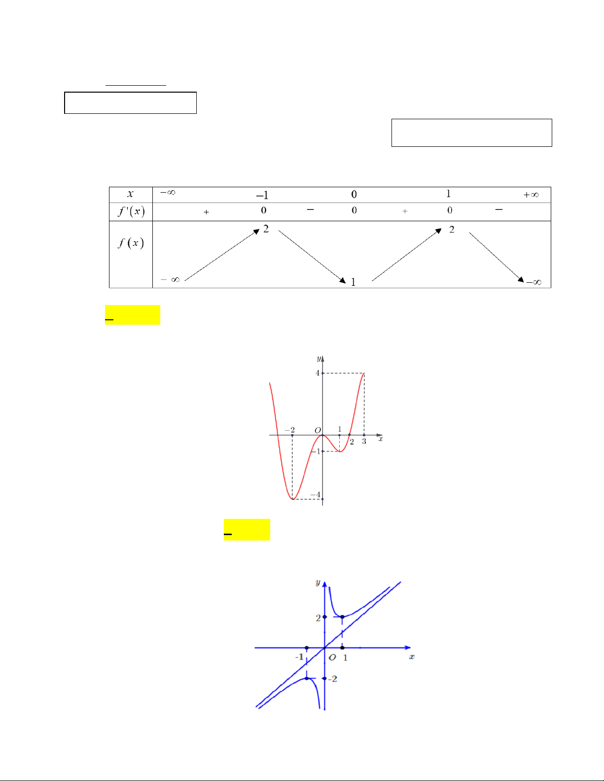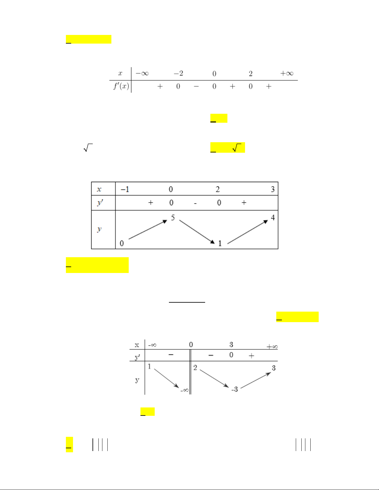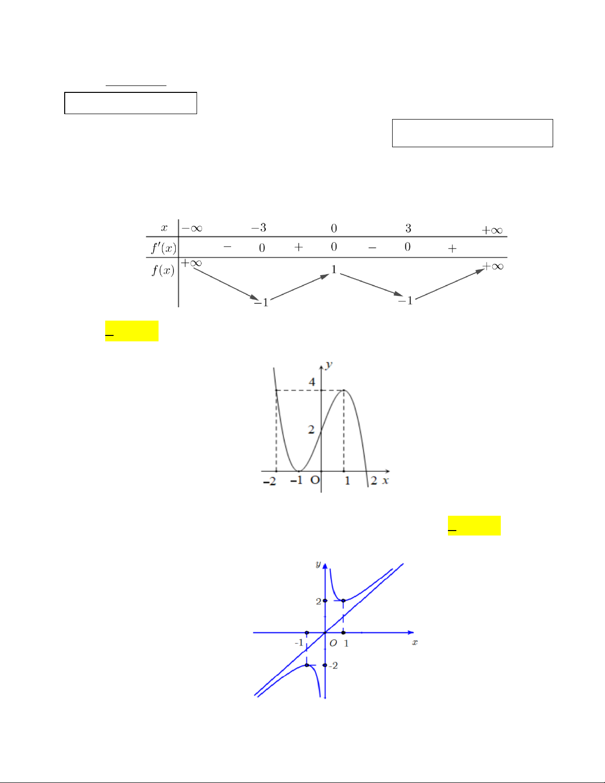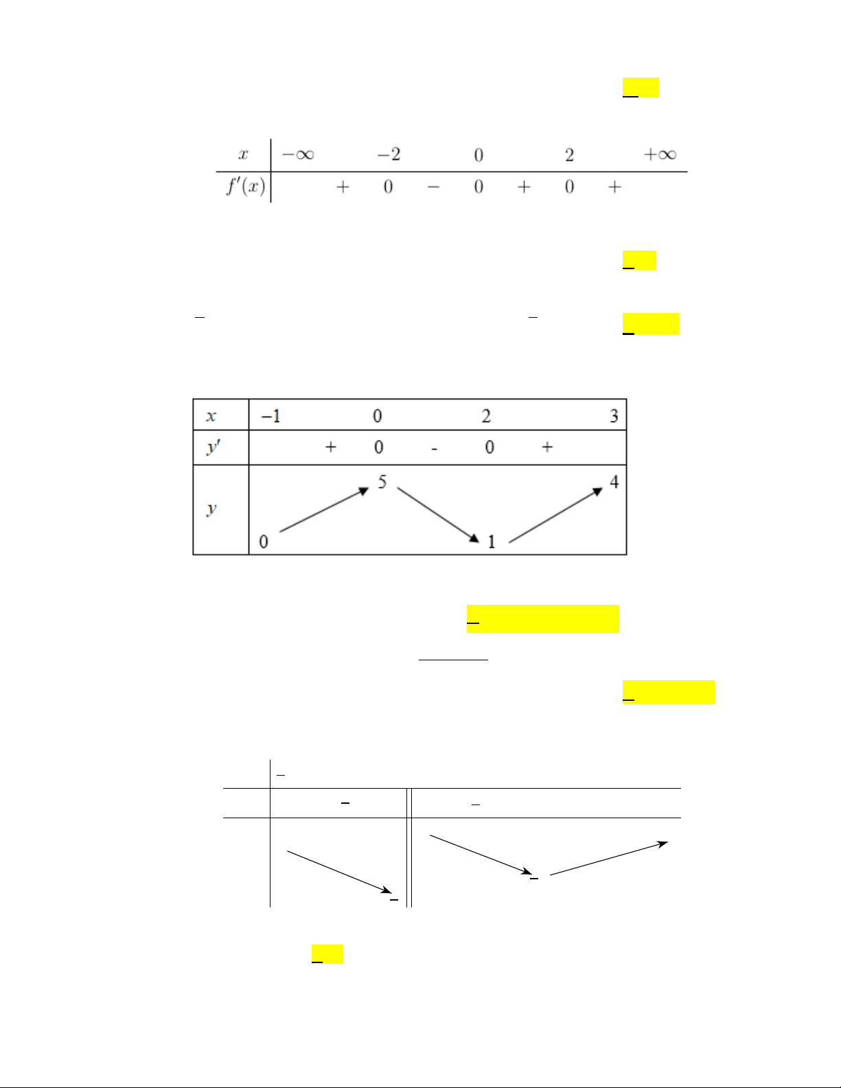 Câu 1. Cho hàm số y = f (x) có bảng biến thiên như sau: