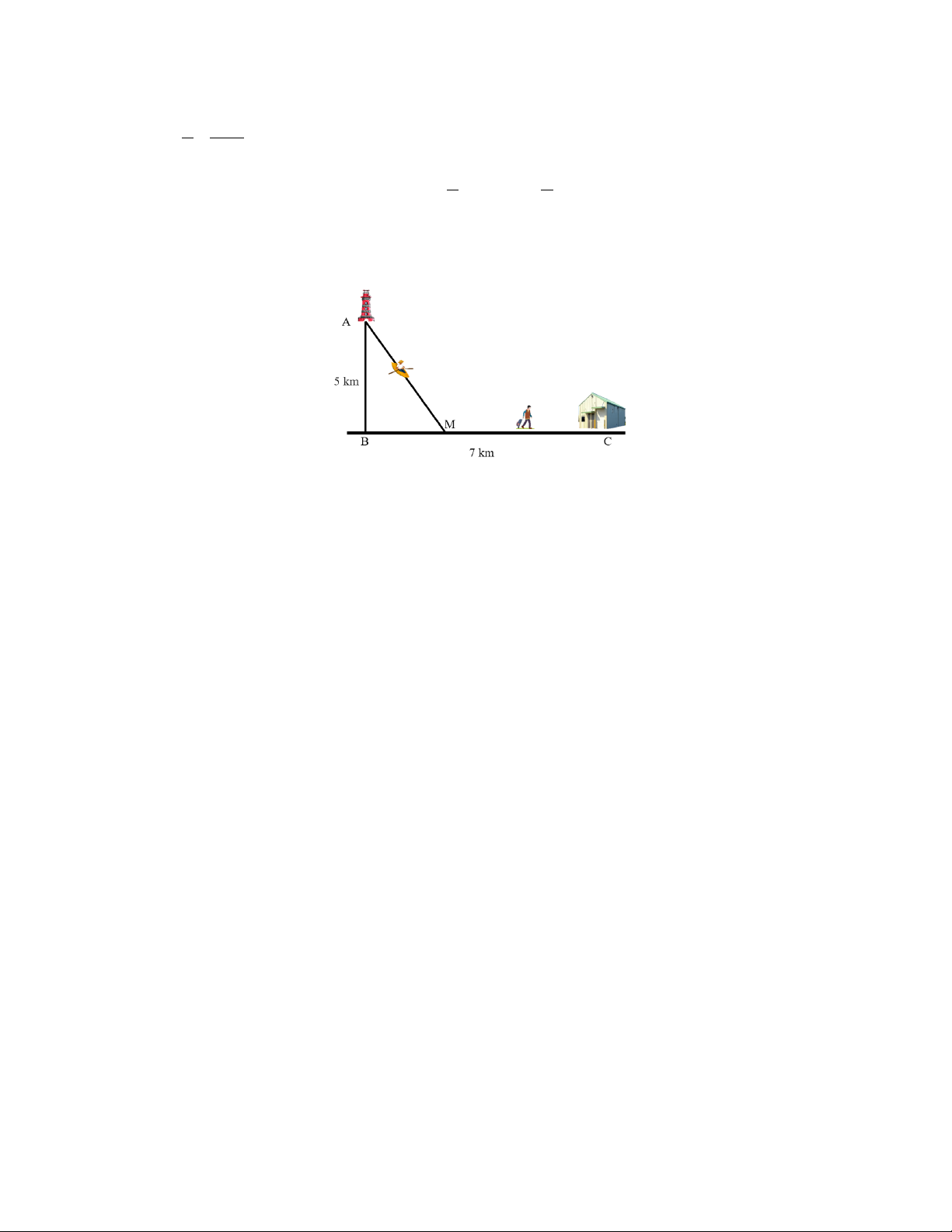 Câu 5. Một ngọn hải đăng đặt tại vị trí A có khoảng cách đến bờ biển là AB = 5km .Trên bờ biển có một