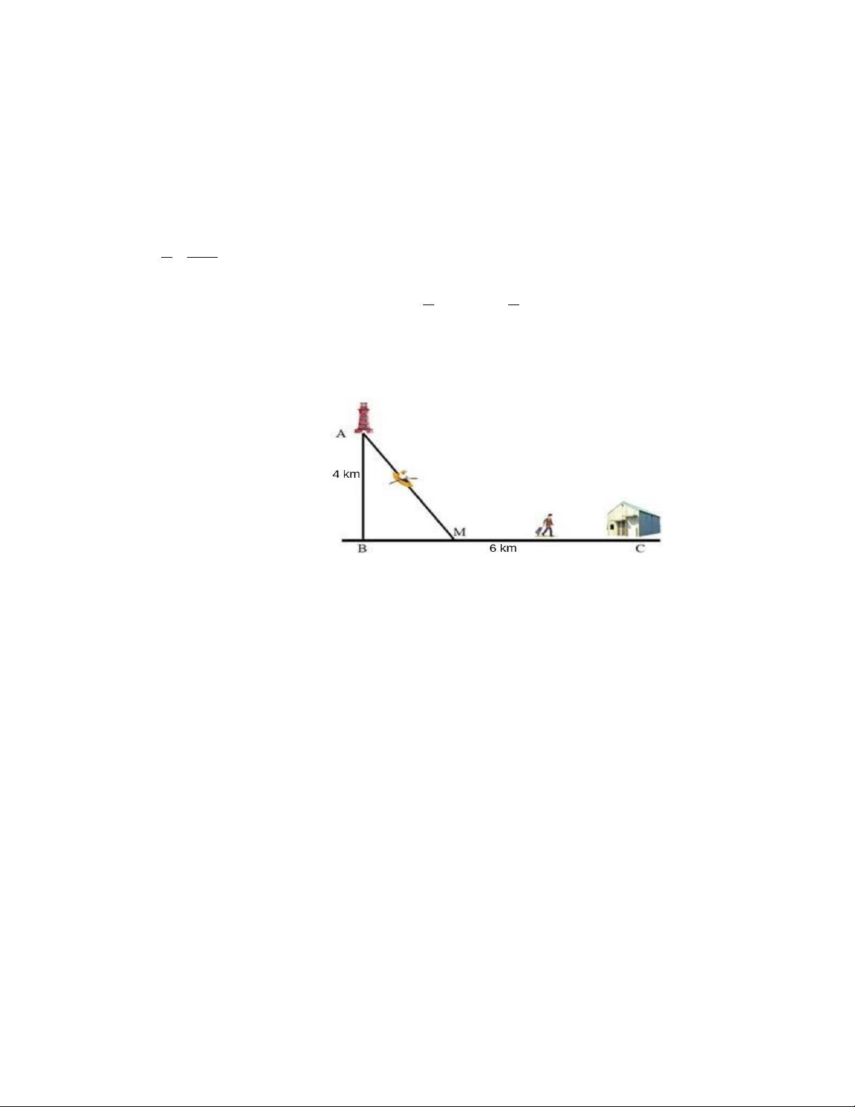 Câu 5. Một ngọn hải đăng đặt tại vị trí A có khoảng cách đến bờ biển là AB = 4km .Trên bờ biển có một