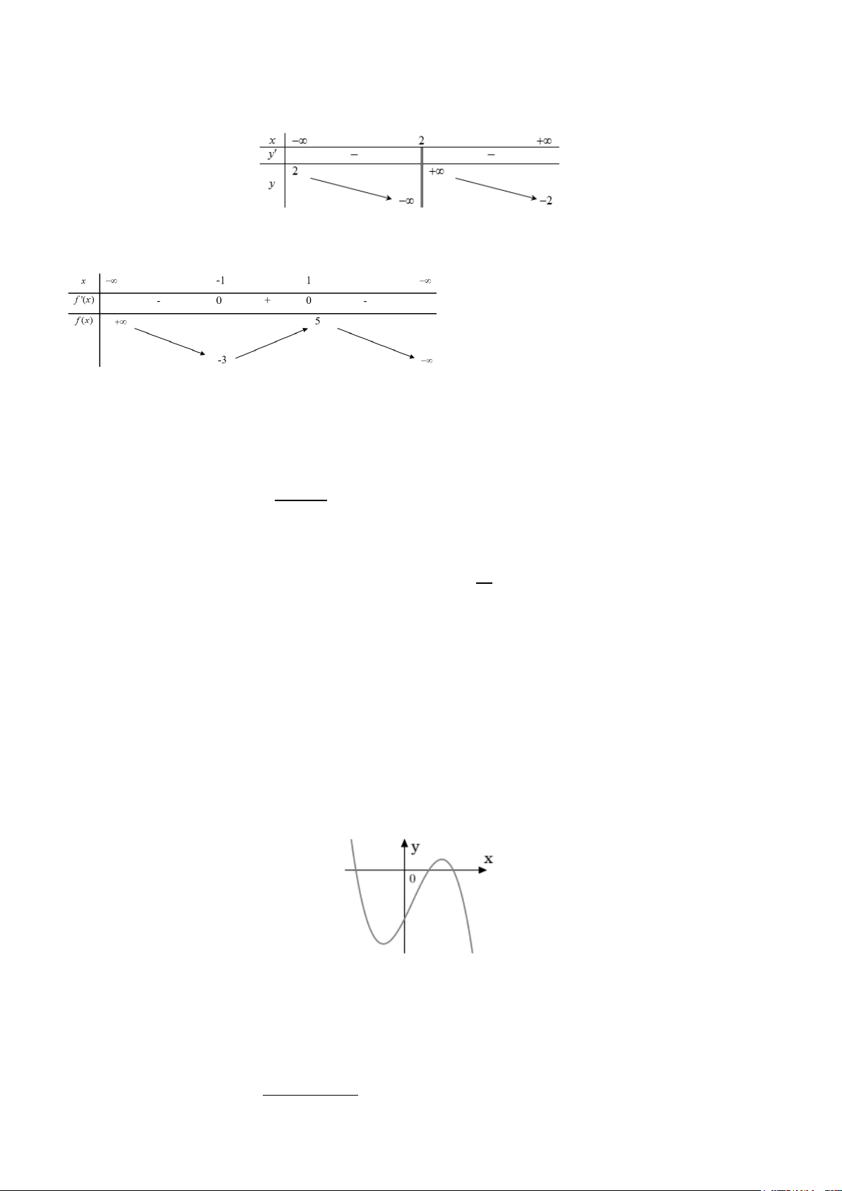 Câu 5. Cho hàm số y = f (x) có bảng biến thiên như sau: