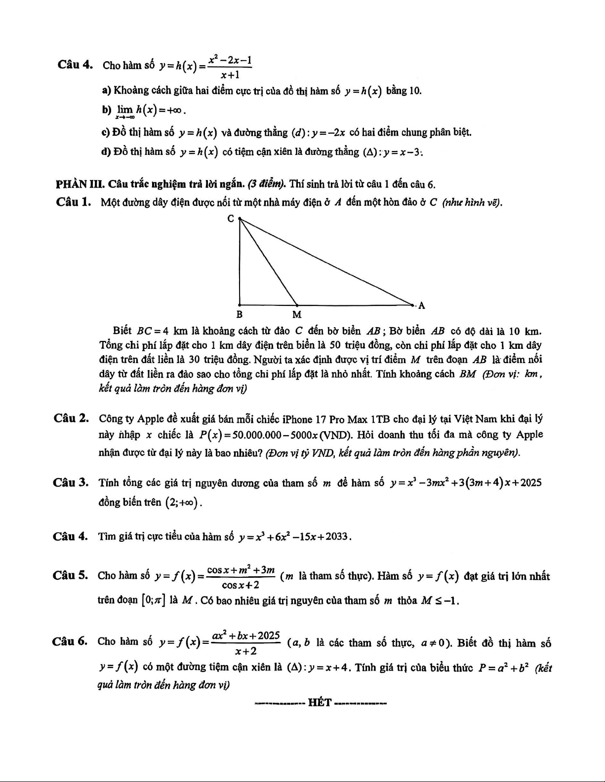 Đề giữa kì 1 Toán 12 năm 2025 – 2026 trường Nguyễn Bỉnh Khiêm – Hà Nội