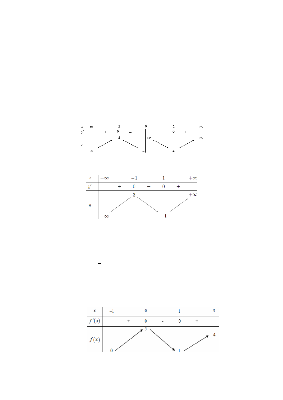Câu 1. Cho hàm số y = f (x) có bảng biến thiên như hình bên dưới đây:
