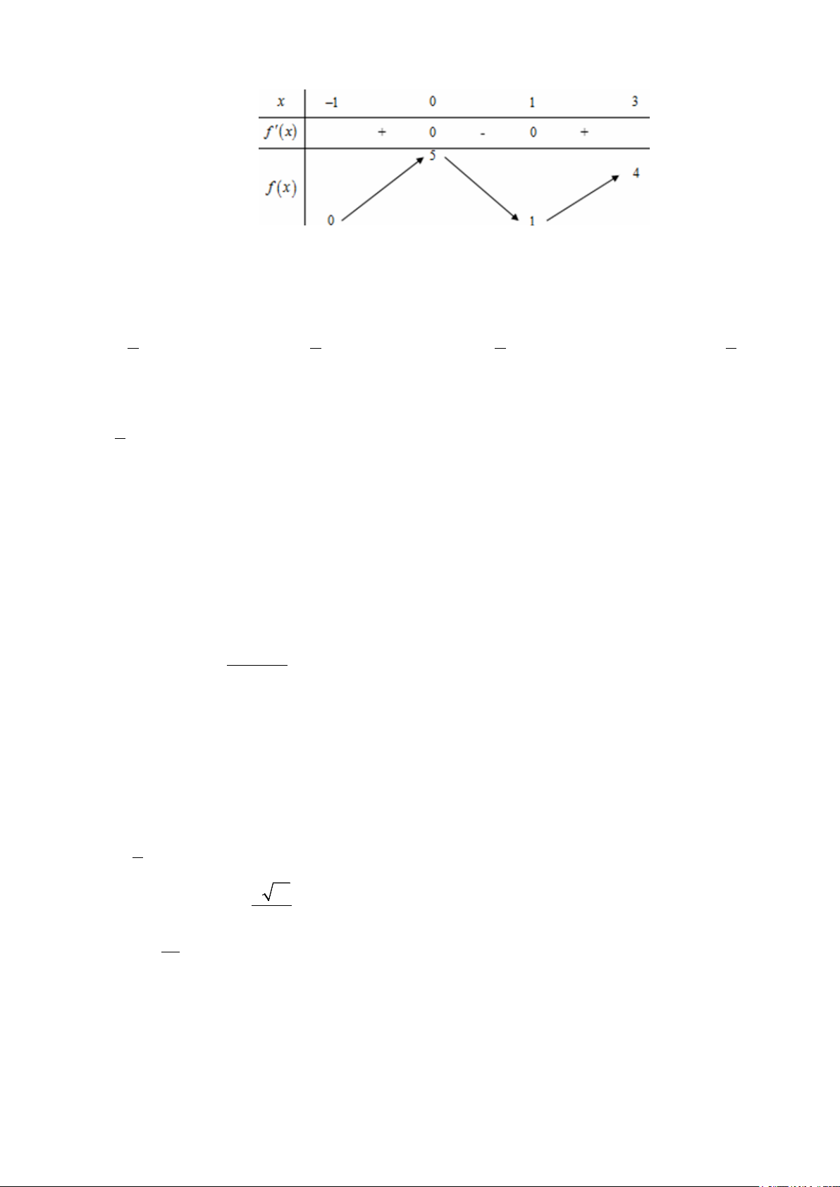 Câu 9. Cho hàm số y = f (x) có bảng biến thiên như sau: