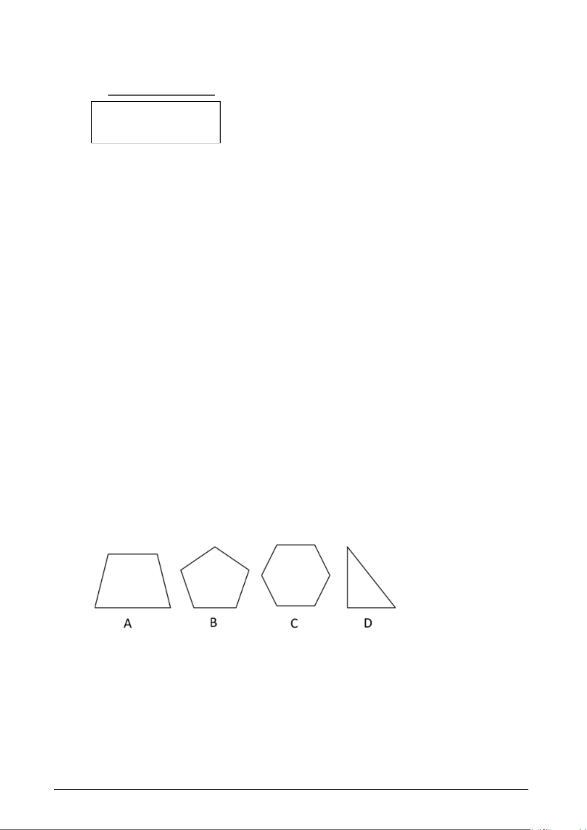 Câu 6. Trong các hình sau, hình nào là hình lục giác đều? A. Hình A B. Hình B C. Hình C D. Hình D
