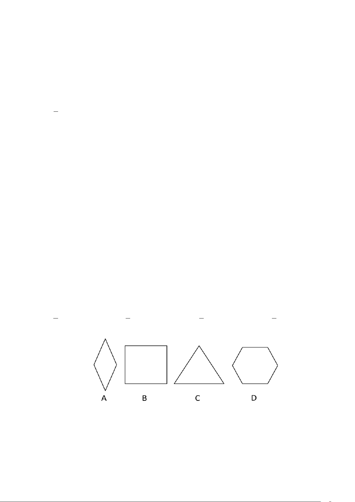 Câu 9. Trong các hình sau, hình nào là hình thoi? A. Hình A. B. Hình B. C. Hình C. D. Hình D.