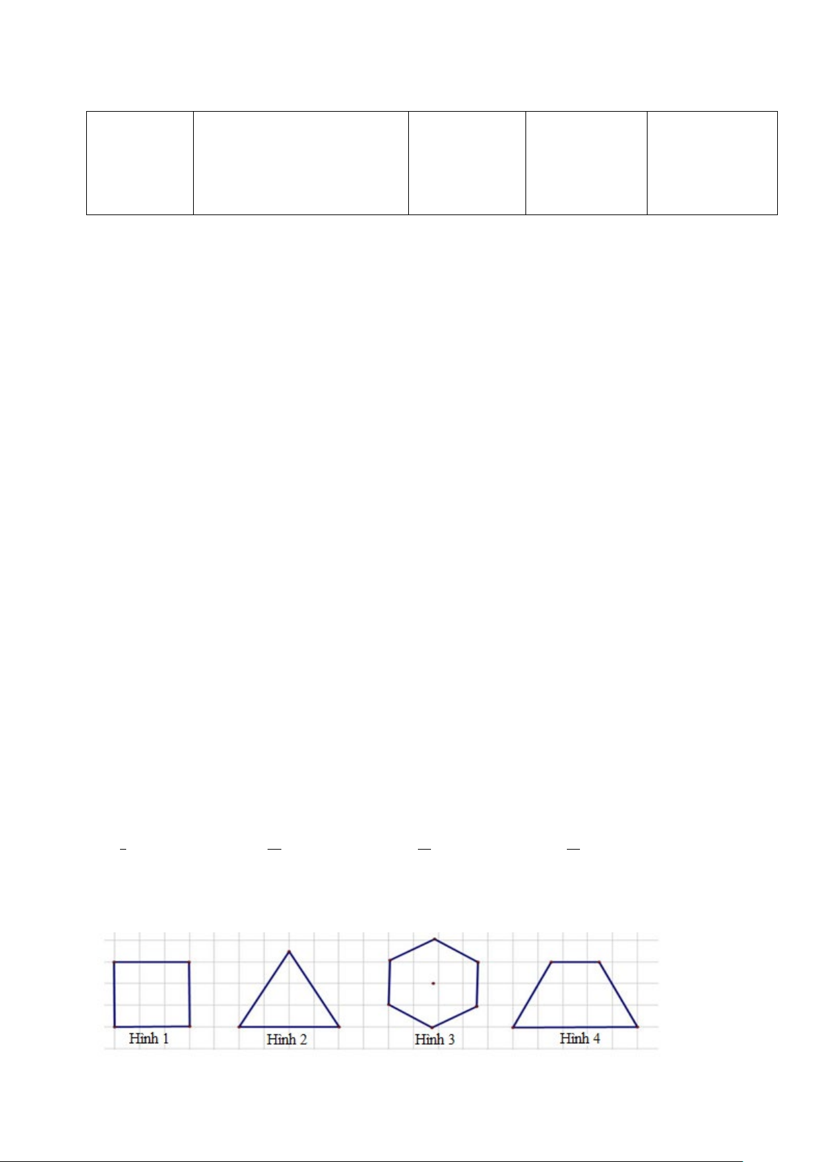 Câu 9: Trong các hình dưới đây, hình nào là hình lục giác đều? A. Hình 1. B. Hình 2. C. Hình 3. D. Hình 4.