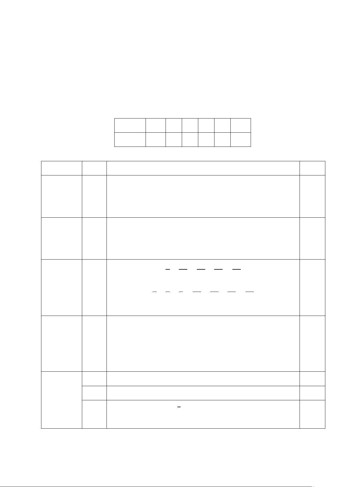(Đúng mỗi câu được 0,5 điểm) Câu 1 2 3 4 5 6 Đáp án B D A C A C