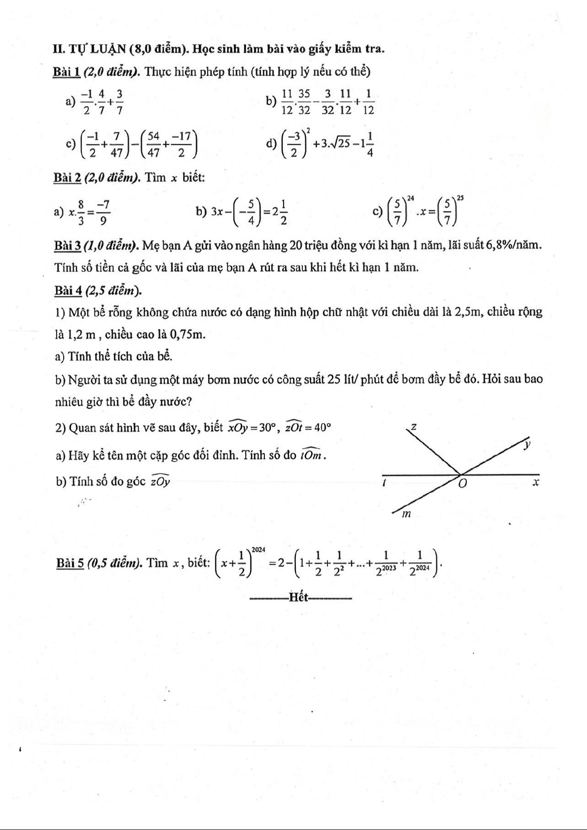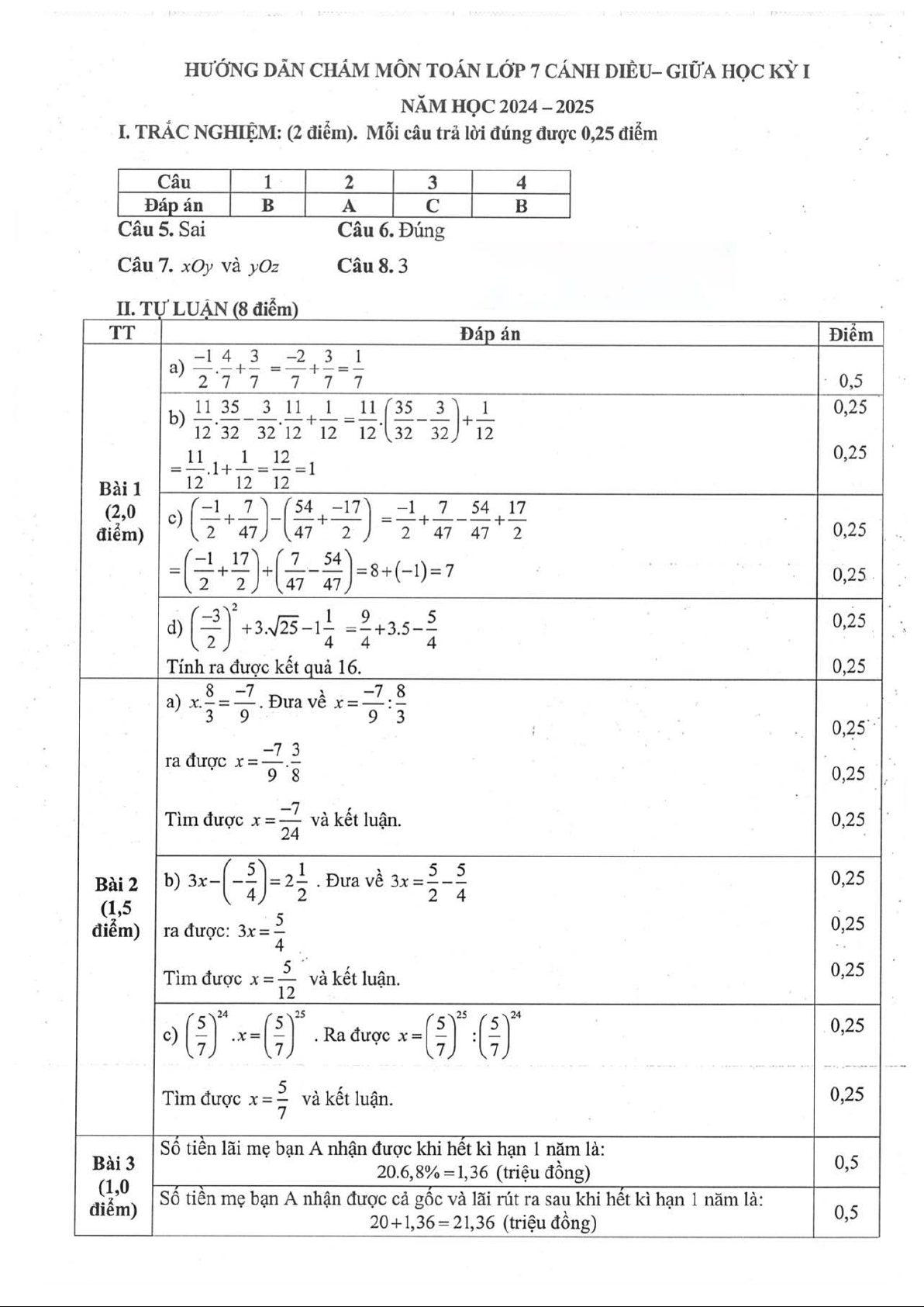Đề giữa kì 1 Toán 7 năm 2024 – 2025 phòng GD&ĐT Vụ Bản – Nam Định