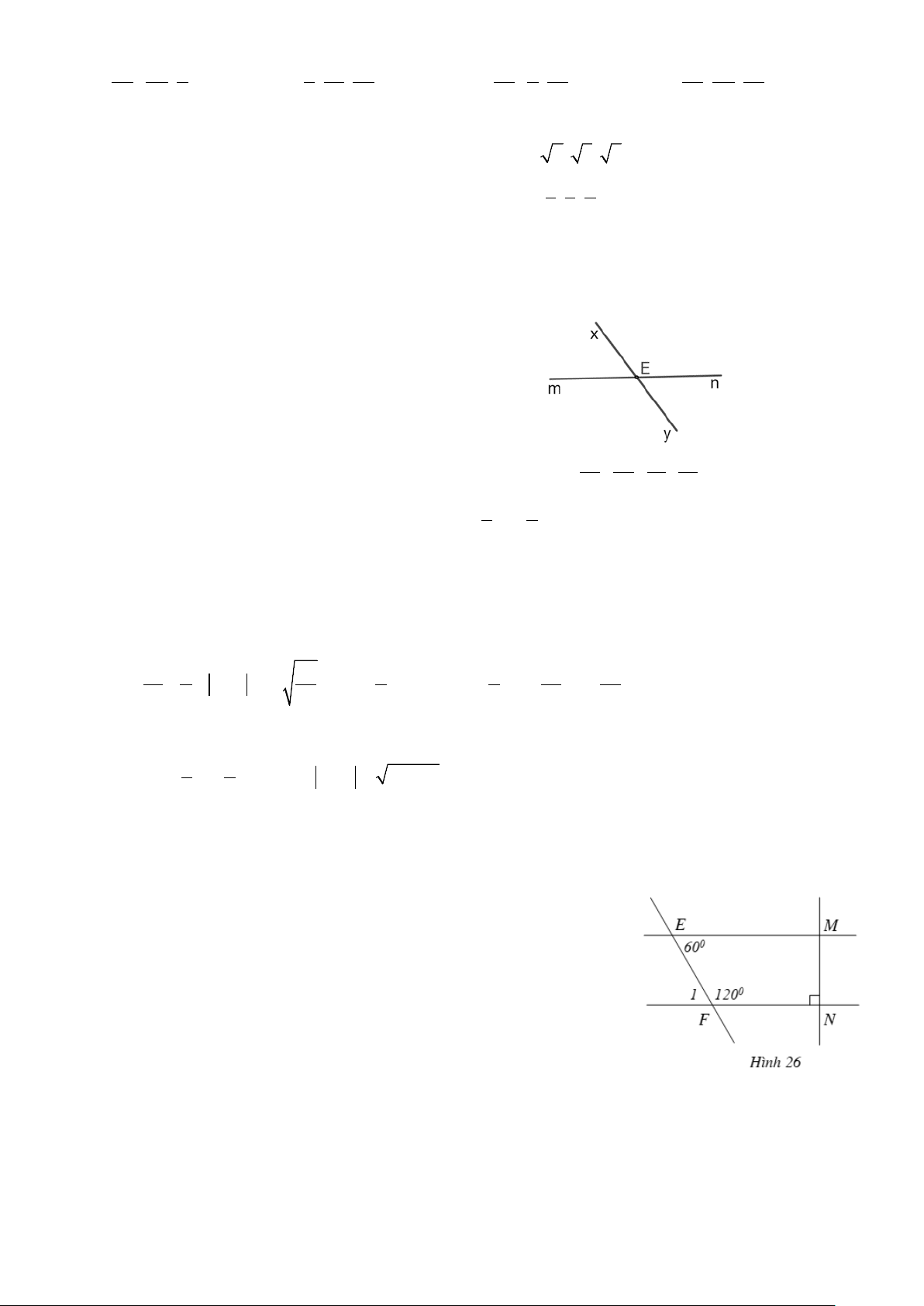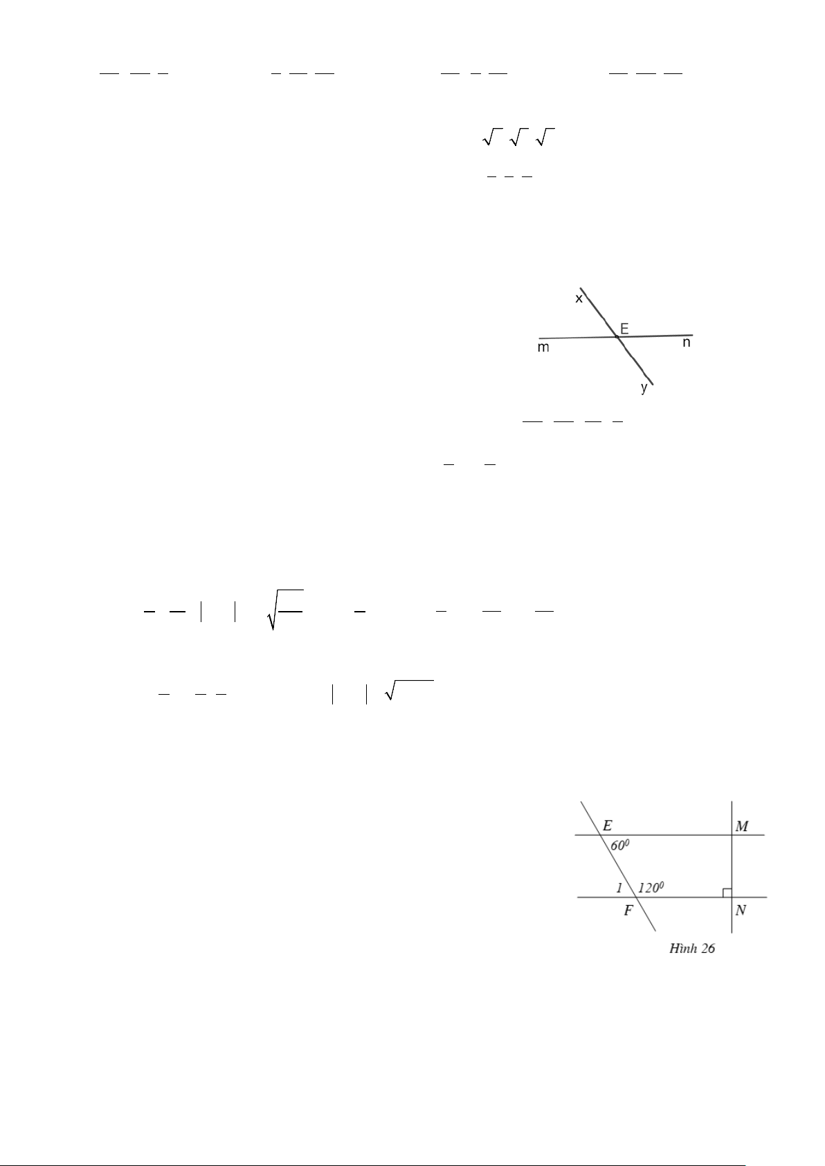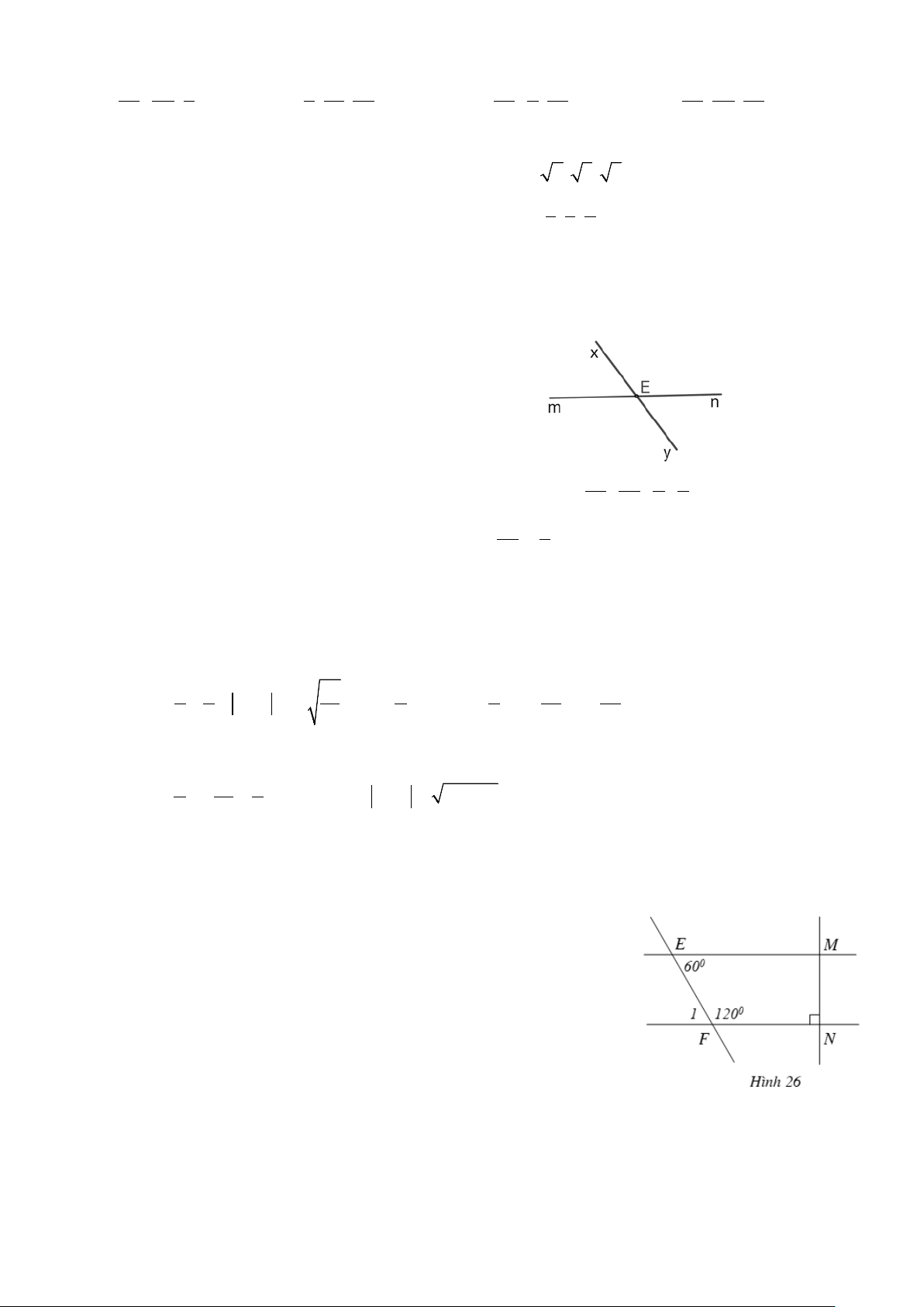 xOt ( Hai góc đối đỉnh) 0.25 Mà 1 xOt = 1 0 0 xOy = .130 = 65 2 2 Vậy 0 mOz = 65 Cho Hình 26 với 0 EFN = 0 FEM = 0 120 ; 60 ; FNM = 90 .