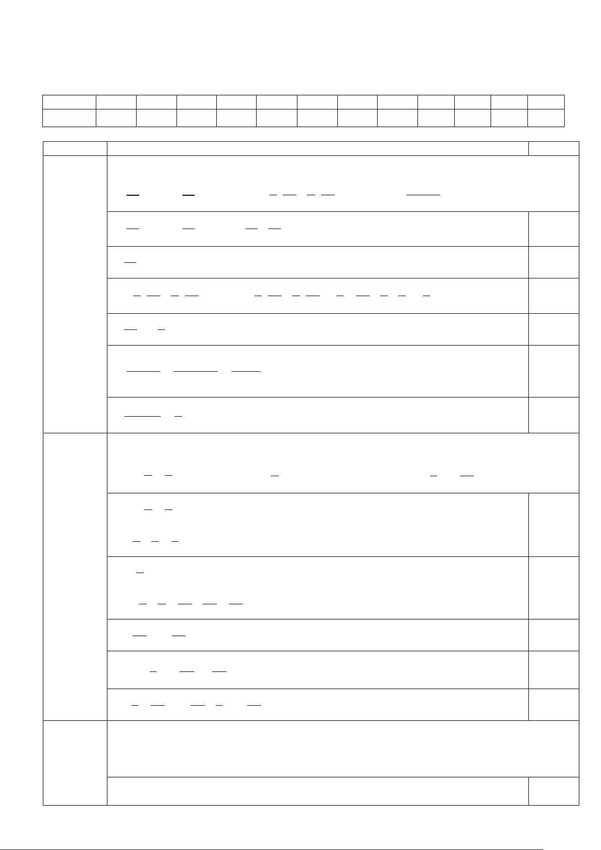 Câu 14: (1,5 điểm) Tìm x, biết: 3 a) 4 7 x + = . b) 2 1 8 − + 2x = 0,25 . c) x − + = . 5 5 5 3 27 a) 4 7 x + = 5 5 7 4 3 0,25x2 x = − = 5 5 5 Câu 14 b) 2 − + 2x = 0,25 . (1,5 điểm) 51 2 5 8 13 0,25 2x = + = + = 4 5 20 20 20 13 13 x = : 2 = 0,25 20 40 3 3 c) 1 8 2 x − − + = = 0,25 3 27 3 1 2 x − − − + = ; 2 1 3 x = − ; x = = 1 − 0,25 3 3 3 3 3