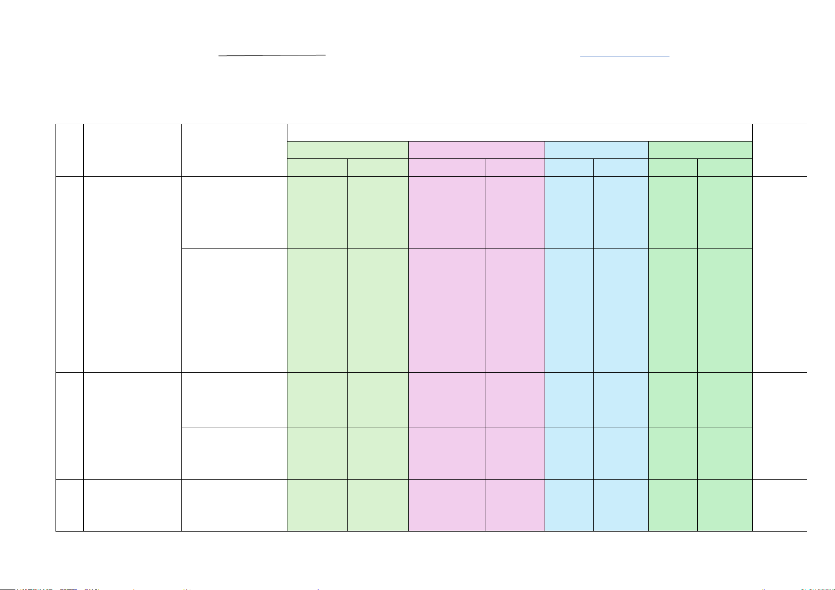 Lăng trụ đứng tam Điểm: Điểm: câu:1 giác, lăng trụ (0,25 đ) (0,25 đ) Điểm: đứng tứ giác. (1 đ) Tổng: Số câu 8 4 4 4 Điểm 2 2 1 2 3 2,0 1 1,0 10 Tỉ lệ % 40% 30% 20% 10% 100 Tỉ lệ chung 70% 30% 100