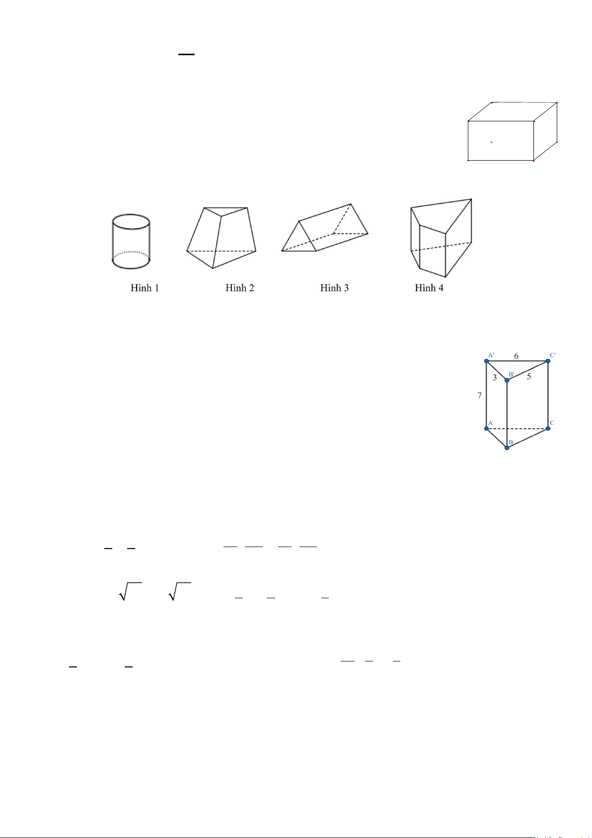 Câu 11. Trong các hình sau, hình nào là hình lăng trụ đứng tam giác? A. Hình 1. B. Hình 2. C. Hình 3. D. Hình 4. Câu 12.