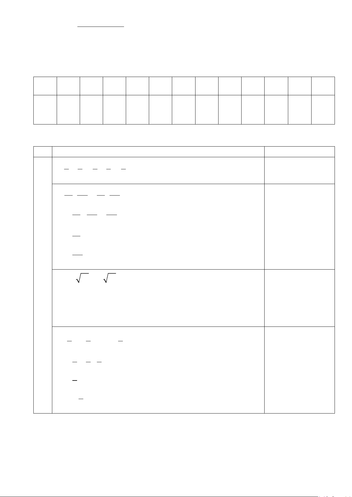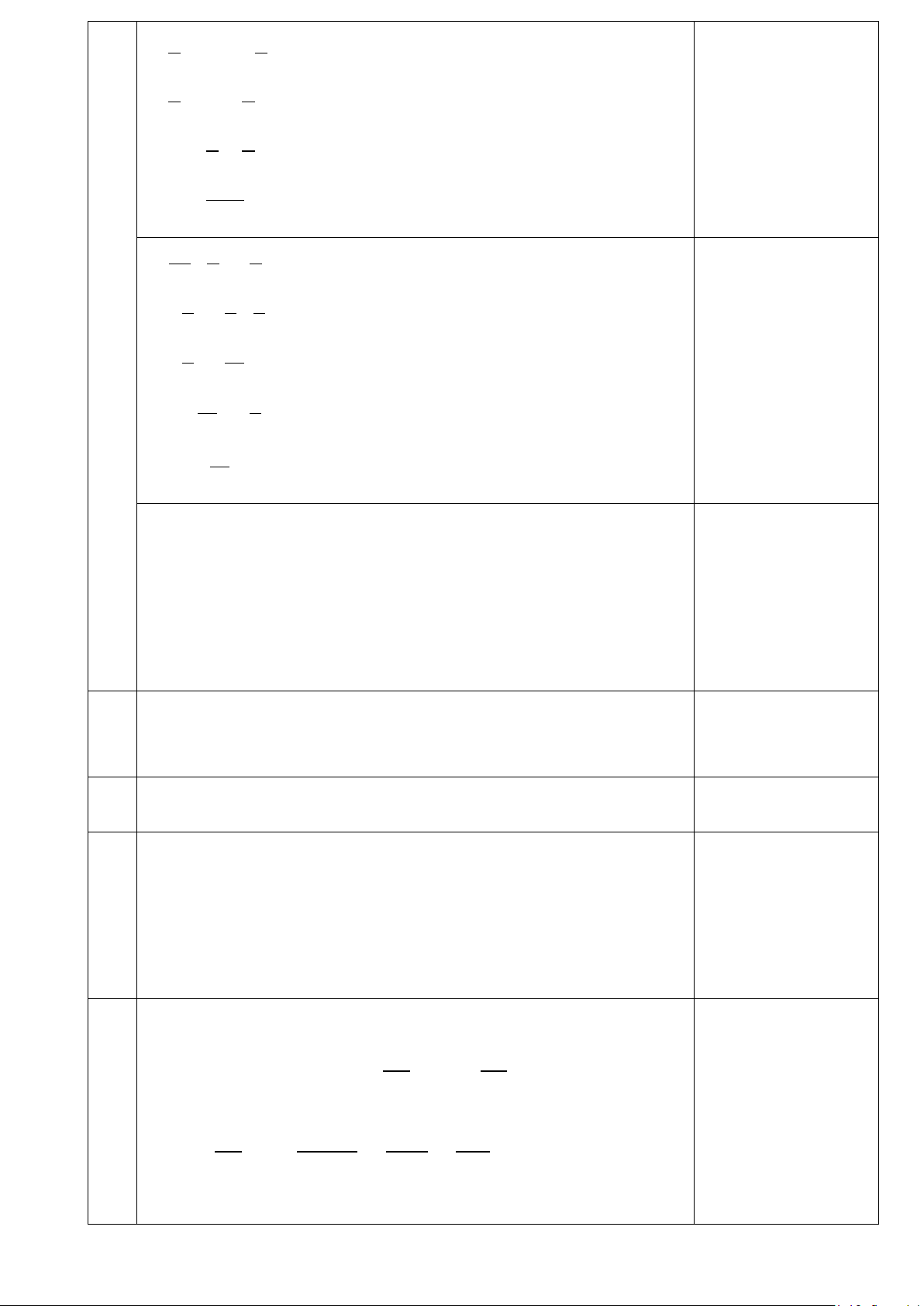 II.PHẦN TỰ LUẬN (7,0 ĐIỂM) Bài Đáp án Điểm a. 7 1 7 2 5 0. 5 6 3 6 6 6 5 2 5 3 13 5 13 5 0.25 5 2 3 . b. 13 5 5 5 .(1) 13 5 0.25 13 1 0, 5. 25 3. 81 0.25 c. 0,5.5 3.9 2, 5 27 24, 5 0,25 3 2 2 2 1 : 1 : 1,5 3 3 2 2 3 3 0.25 : d. 3 2 2 2 1 3 0,25 1 3 2 1 x 3 3 2 2 7 0.25 x a. 3 2 2 7 x 3 2 0,25 17 x 6 3 − 1 2 − x = 4 2 3 1 2 3 − x = + 0.25 2 3 4 2 b. 1 17 − x = 2 12 17 1 x : = − 12 2 0,25 17 x = − 6 c) 2x2-15=17 2x2 =17+15 0.25 2x2 = 32 x2=16 0.25 x= 4 hoặc x= -4