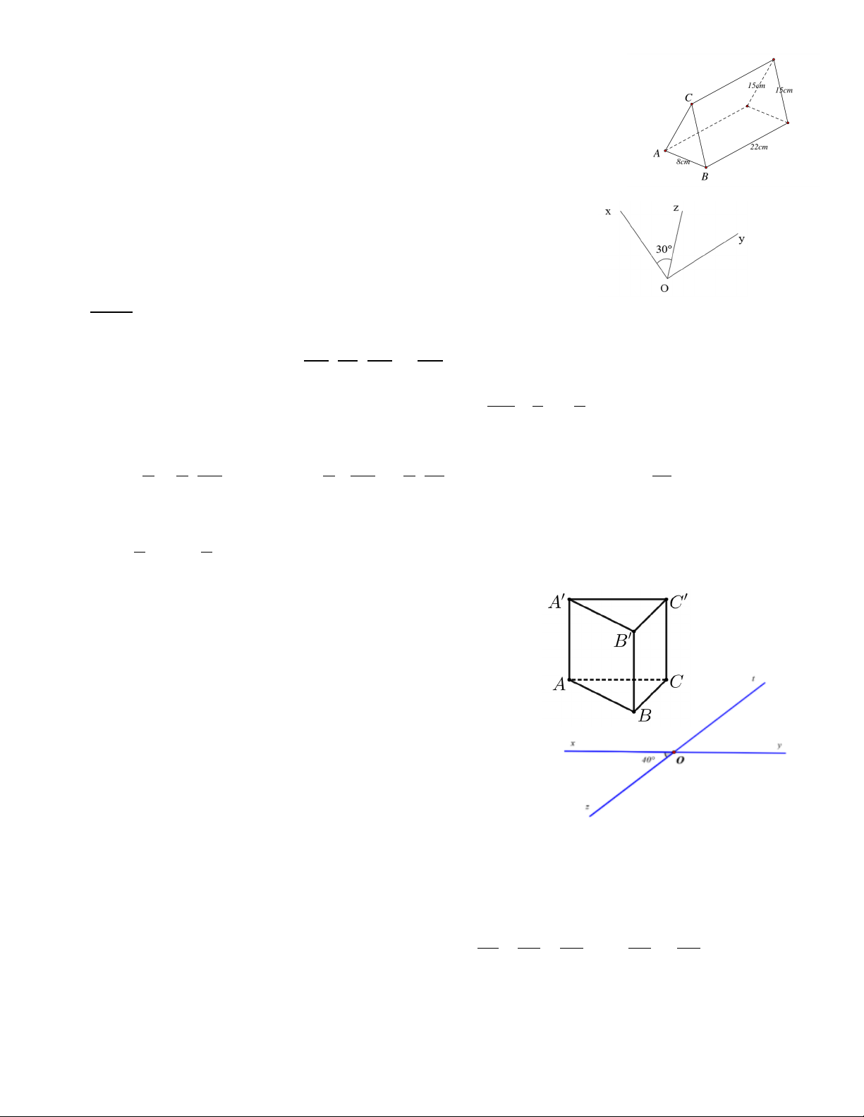 b) Các mặt bên của hình lăng trụ đứng tam giác: A'B'BA,B'C'CB,A'C'CA. 0,5 Bài 5 Cho xOz = 40°. 0,5 điểm + Tính xOt . Vì xOz kề bù với xOt . 0,25 Nên: 0