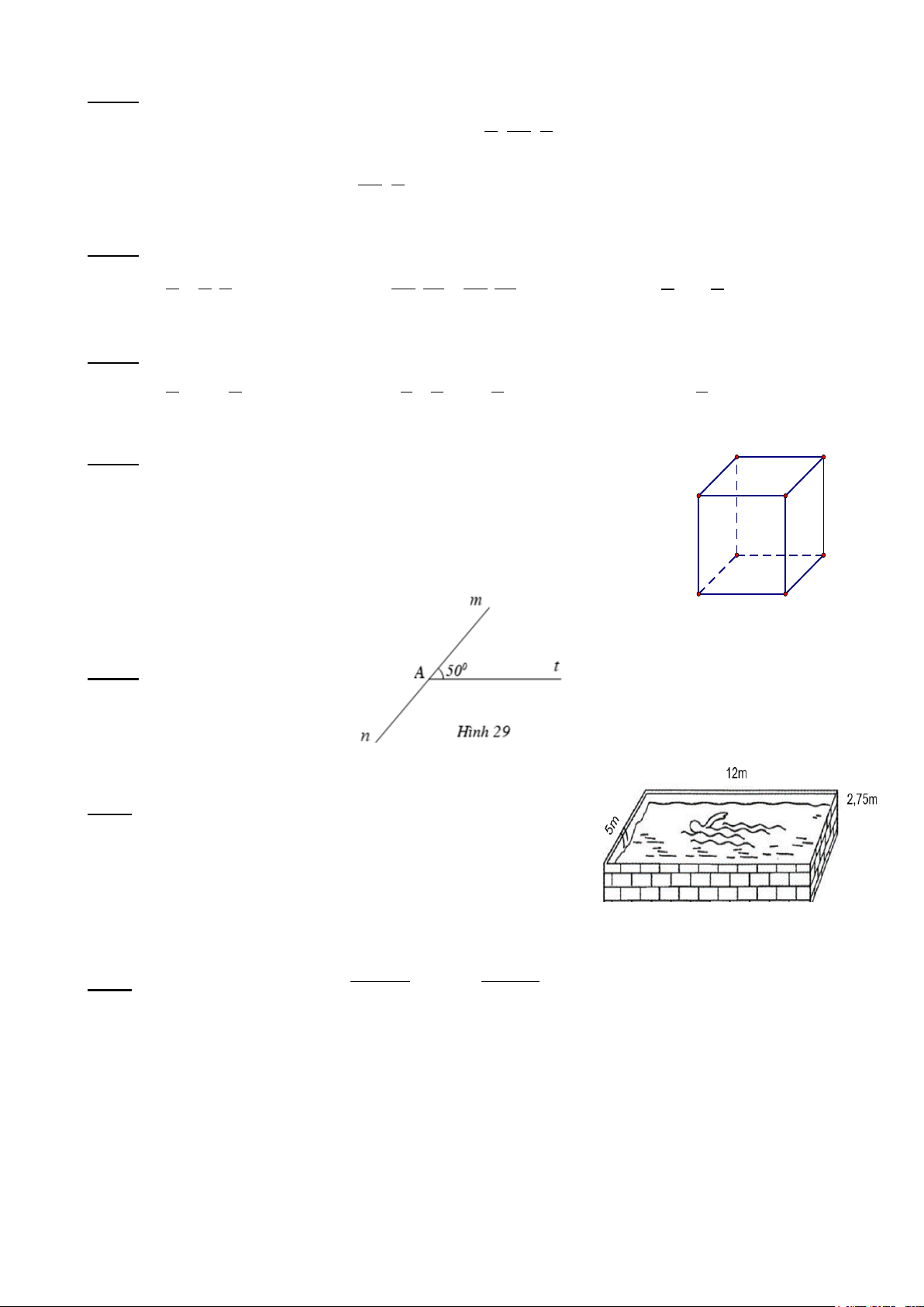 b) Nêu tên một đường chéo của hình hộp : AG hoac BH hoac CE hoac DF. 0,5 Vì nAt và mAt là hai góc kề bù: Bài 5 0,25 (0,5 điểm) 0 = − nAt 180 mAt 0 0 0 nAt =180 − 50 =130 0,25