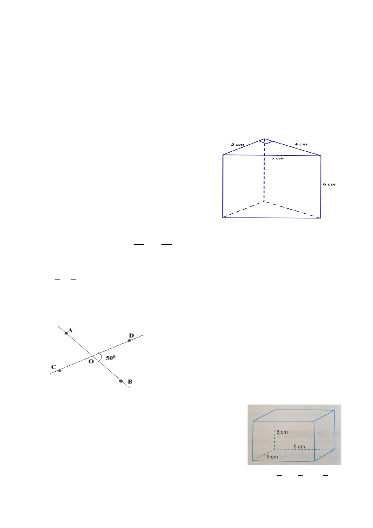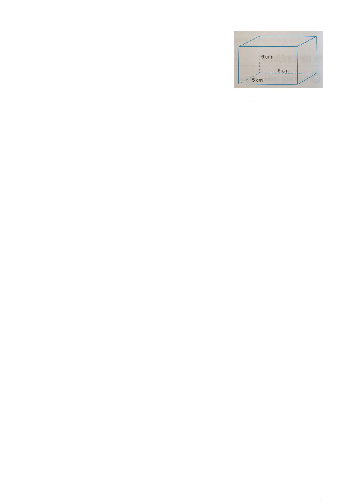 Thể tích của hình hộp chữ nhật: 5.6.8 = 240 cm3 0,5