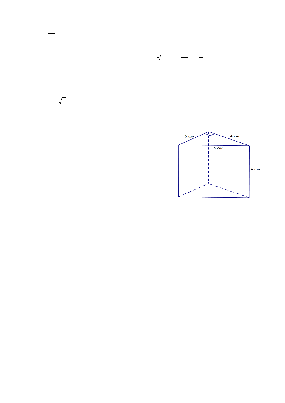 d) Diên tích toàn phần của hình lăng trụ đứng tam giác là: 2 1 S S 2S (3 4 5) 6 ⋅ 3 4 = + = + + ⋅ + ⋅ ⋅ = 72 + 12 = 84 (cm2) tp xq d 2 => Chọn: ĐÚNG