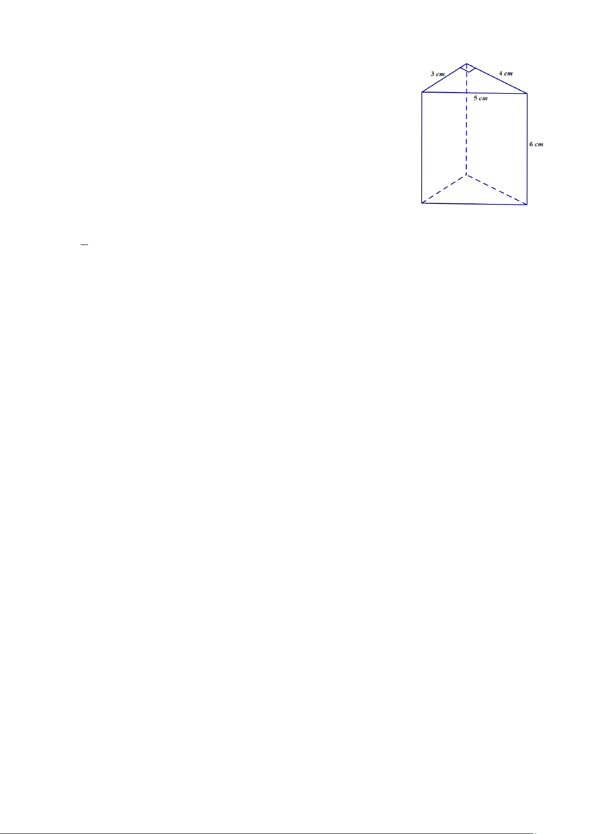 b) Diên tích xung quanh của hình lăng trụ đứng tam giác là: S = (3 + 4 + 5)⋅6 = 72 (cm2) xq => Chọn: SAI