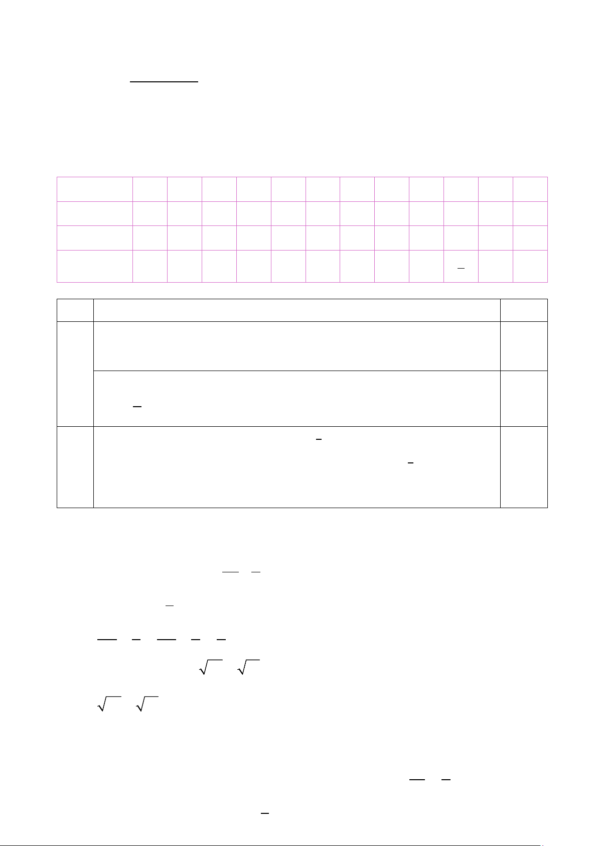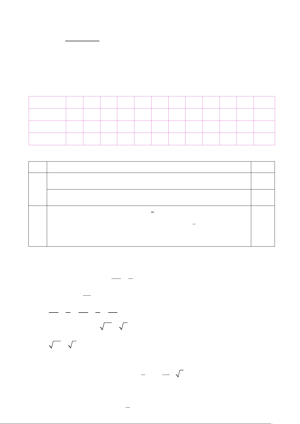 câu trả lời đúng được 0,5 điểm. BẢNG ĐÁP ÁN Câu 1 2 3 4 5 6 7 8 9 10 11 12 Đáp án D B C D B B D B C A A B Câu