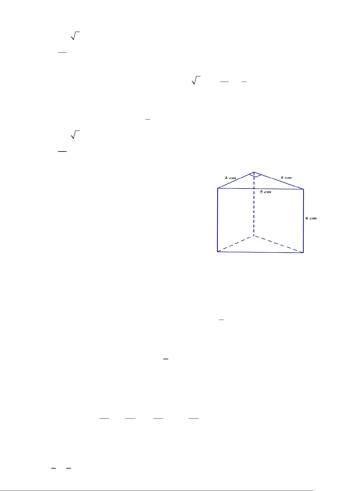 c) Thể tích của hình lăng trụ đứng tam giác là: 1 V 3 4 = ⋅ ⋅ ⋅6 = 36 (cm3) 2 => Chọn: SAI