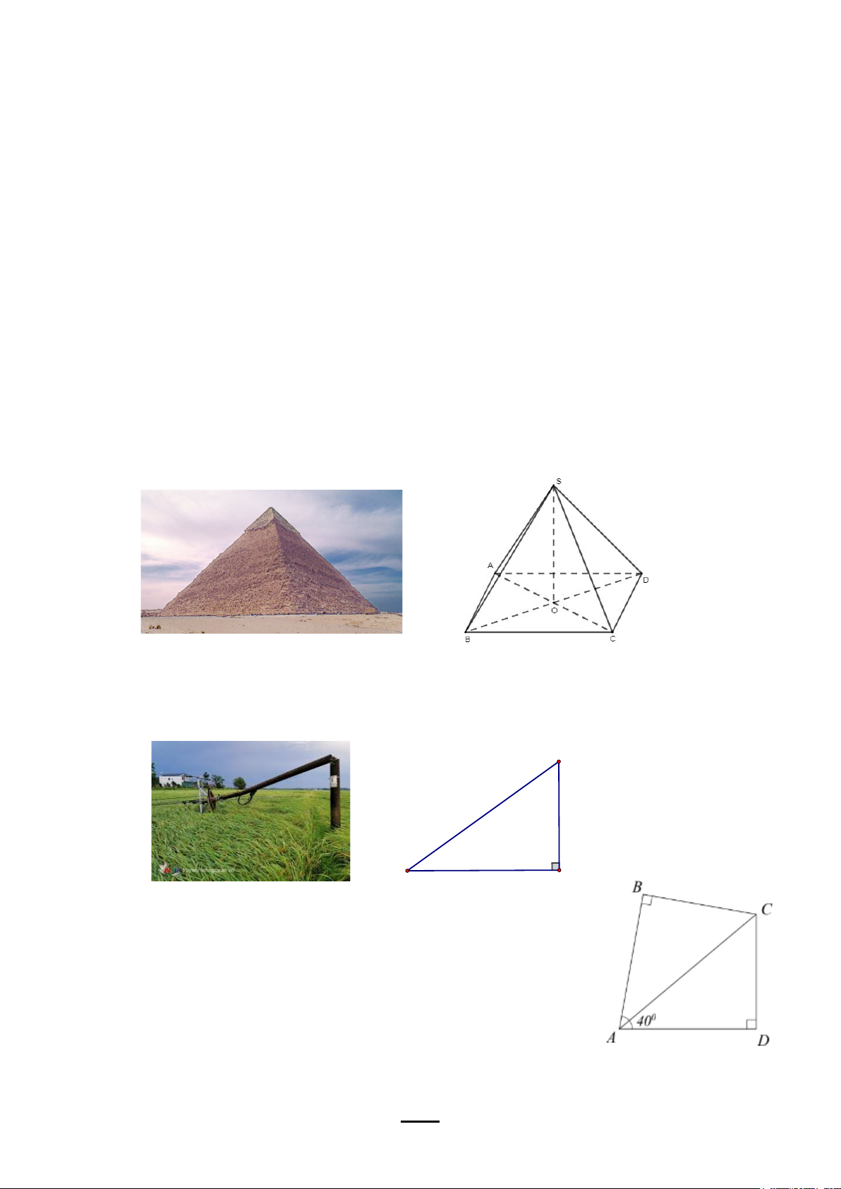 Câu 16 (1,0 điểm): Kim tự tháp Giza nổi tiếng ở Ai Cập có dạng hình chóp tứ giác đều (như hình