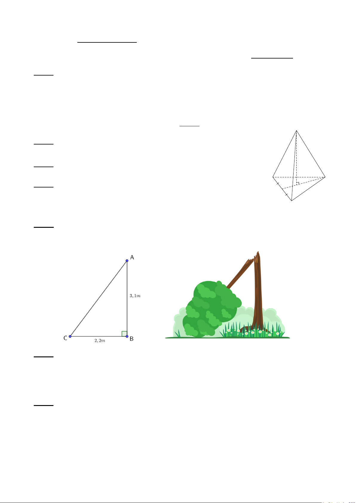 hình chóp tam giác đều và hình chóp tứ 5,0 giác đều (0,5 đ) 3 Định lí pythagore B5 10